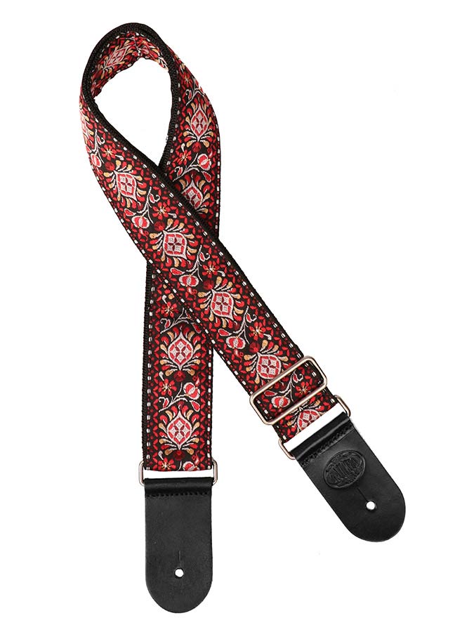 Gaucho GST-189-01 er en gitarreim fra Traditional-serien med 2" bred jacquard-vevd nylon i et flerfarget mønster. Reimen har lærslips som gir ekstra holdbarhet, og den er justerbar for god komfort. Passer til både elektriske og akustiske gitarer.