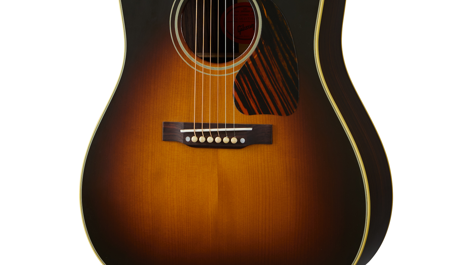 The Custom Shop Historic Reissue 1942 Banner Southern Jumbo features the vibe of a vintage Gibson Acoustic. The Thermally Aged Adirondack red spruce top and rosewood back and sides have outstanding tonal response and superior playability. At home playing first position chords or picking lead blues licks, the Southern Jumbo is a versatile instrument. Proudly displaying the "Only a Gibson is Good Enough" banner on the headstock, this custom instrument also includes an open slot bridge, a bone saddle and nut, and the classic 1.77" nut width.