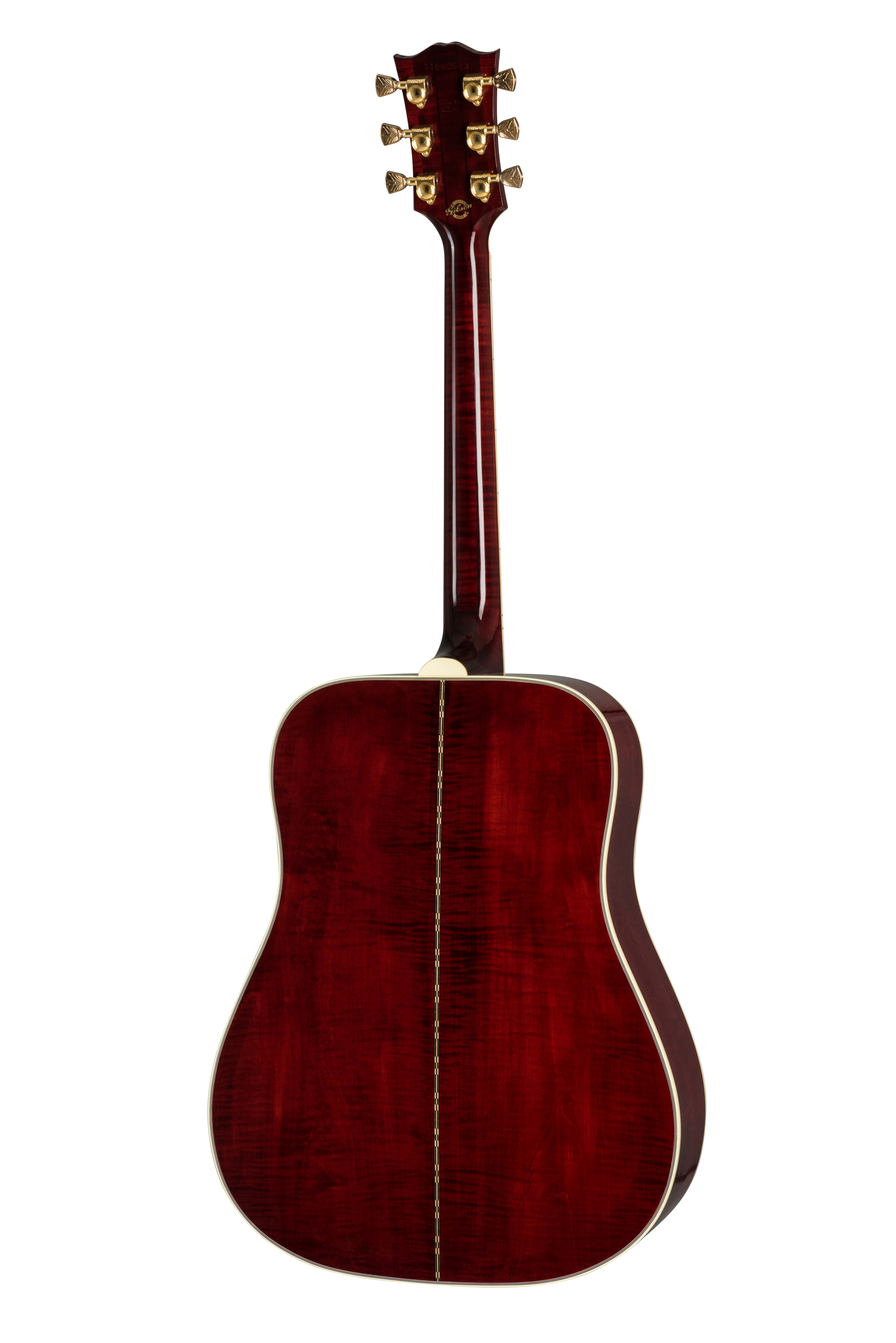 The Doves in Flight incorporates the features of the legendary Dove with some of the finest decorative work in the industry. The Doves in Flight displays 28 individually engraved dove inlays—seven on the headstock, 16 on the fingerboard, three on the pick guard, and two on the bridge—each with its own original design. Each tuner knob is hand engraved for full detail. Now hand built using premium ebony on the fingerboard and bridge.