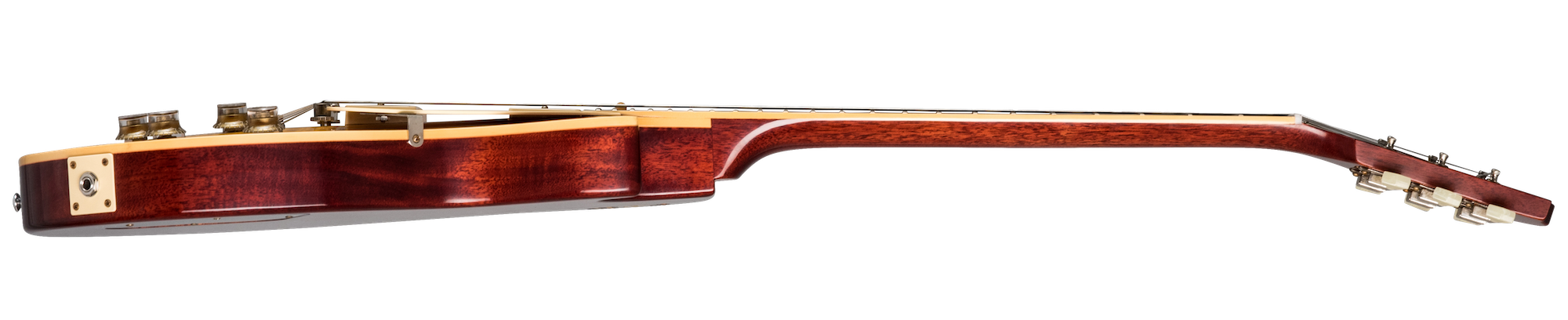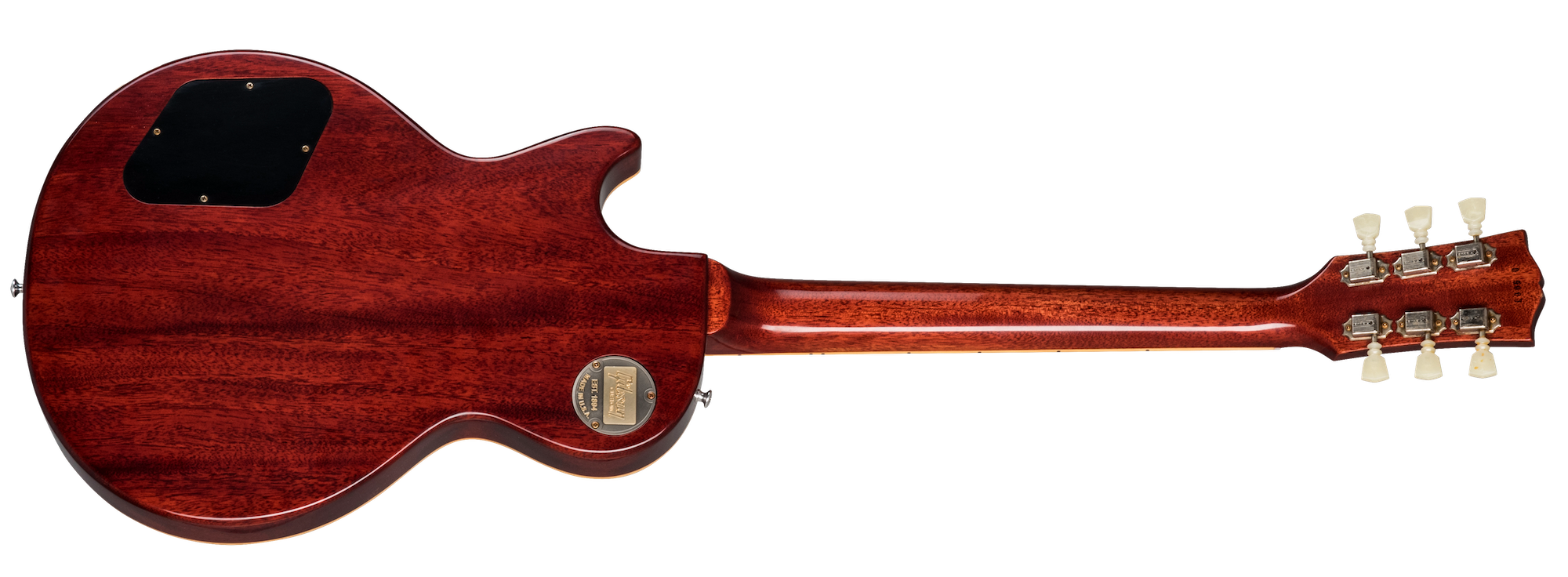 Modellen kombinerer hide-glue-konstruksjon, nøyaktig gjenskapte plastdeler og historisk korrekt hardware med det klassiske Les Paul-uttrykket. Reflektor-knapper og double-ring stemmeskruer fullfører den tidstypiske looken. Dette er en presis og trofast reissue som leverer fyldig vintage tone, responsiv sustain og spillbarhet i toppklasse.