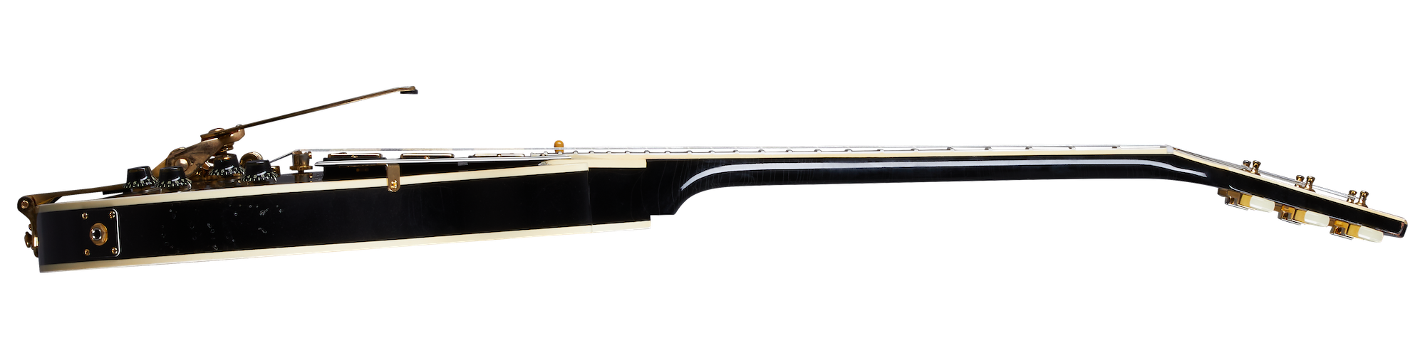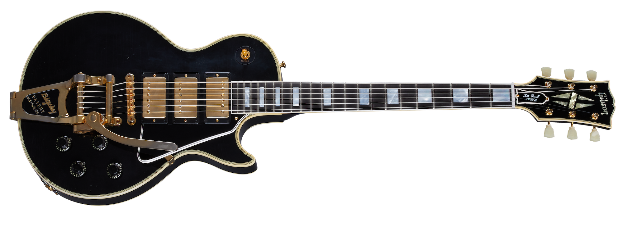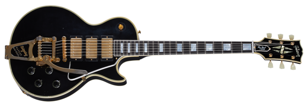 1957 Les Paul Custom Reissue Light Aged Ebony gjenskaper den legendariske Black Beauty-modellen i all sin historiske prakt. Med tre pickups, Bigsby vibratosystem og en estetikk i svart, perlemor og gull, leverer den en perfekt kombinasjon av eleganse, sustain og klassisk respons.
