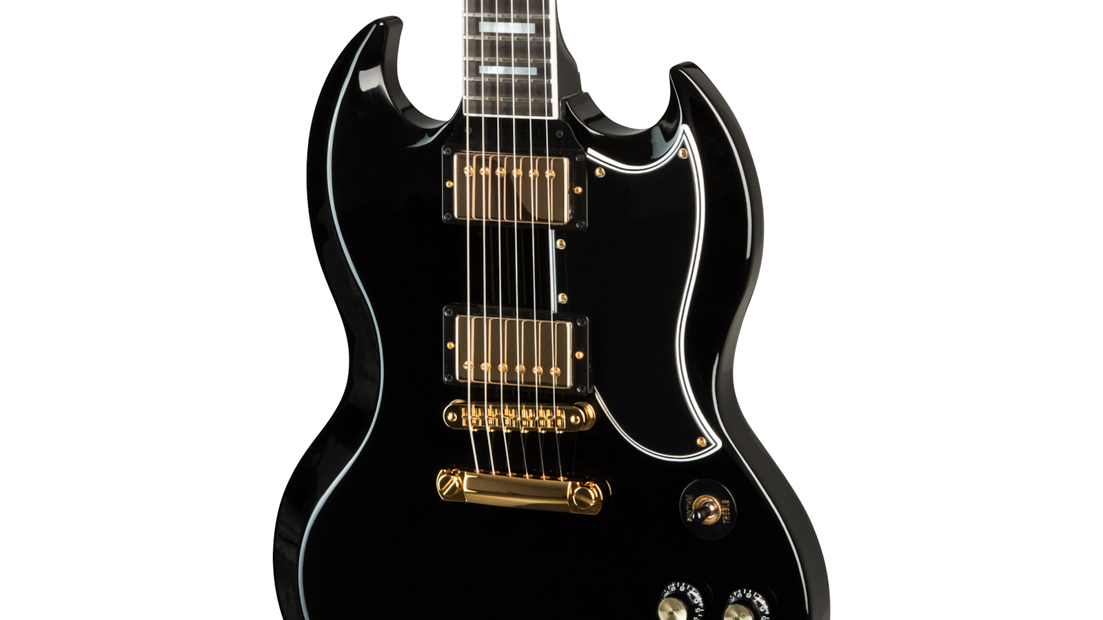 This recent Custom Shop addition takes the engine and aesthetics of the iconic Les Paul Custom and applies them to the SG platform. The result is a huge-sounding, fast-playing and classy-looking instrument that will bring out the best in any player. The solid ebony fingerboard projects chords and notes with clarity and sustain, while the 490R and 498T humbuckers compliment a wide range of sonic possibilities, from clean jazz to the heaviest distortion.