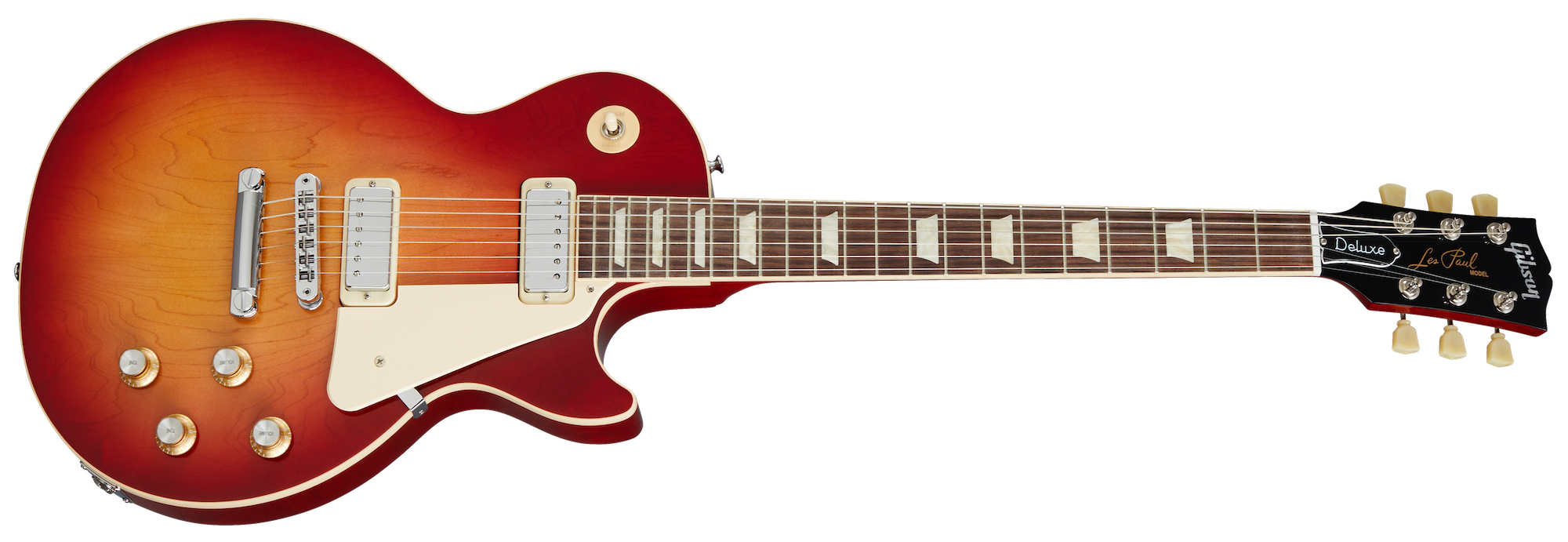 Gibson Les Paul 70s Deluxe bringer tilbake den klassiske modellen som først introduserte mini-humbuckere til Les Paul-serien i 1969. Den nye utgaven bygger på 70-tallsoppskriften med mahognikropp uten weight relief, lønnetopp, og en rundere C-formet mahognihals for komfort og tradisjonell spillefølelse.