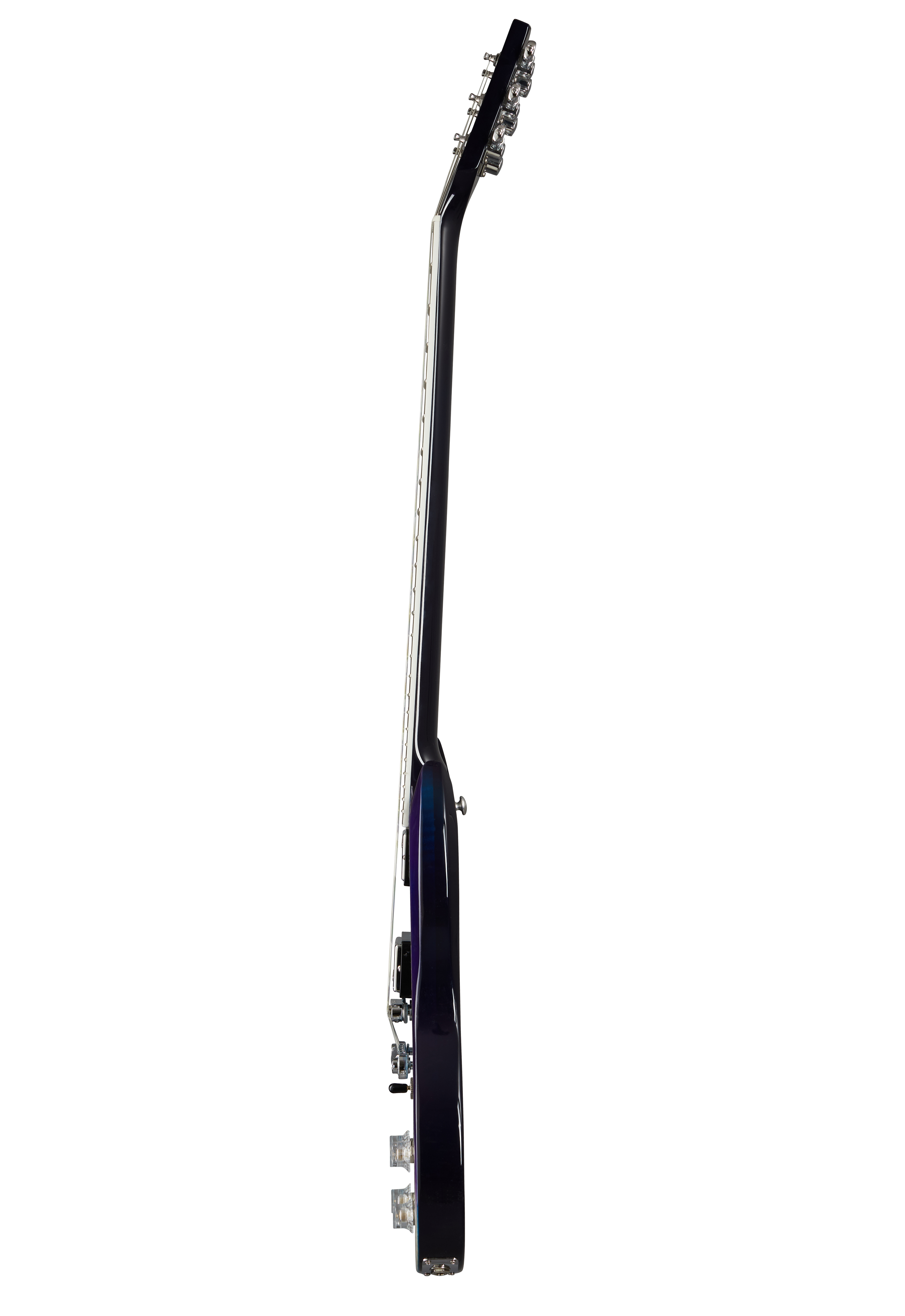 The newly refreshed Gibson SG Modern incorporates many contemporary updates that players have embraced and it’s much more than a classic “solid guitar”; it’s a hybrid between an SG and a Les Paul. Shaped and scarfed like a classic SG, the body is crafted with a AA maple top and mahogany back, characteristic of a Les Paul. This combination is renowned for its resonance and sustain. The genuine ebony, 24 fret compound radius fingerboard and asymmetrical, slim taper neck allow fast and silky access to the highest frets. A pair of calibrated BurstBucker Pro Alnico V humbuckers deliver fire power and the push-pull controls allows you to switch between the Gibson humbucker and the single coil P90 sounds, both of which have defined so many genres of music across multiple generations since we invented them. Upscale appointments include genuine mother of pearl inlays, Grover Rotomatic tuners, and clear top hat knobs.