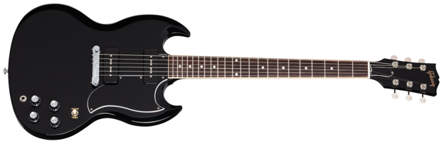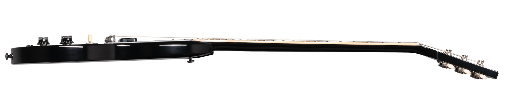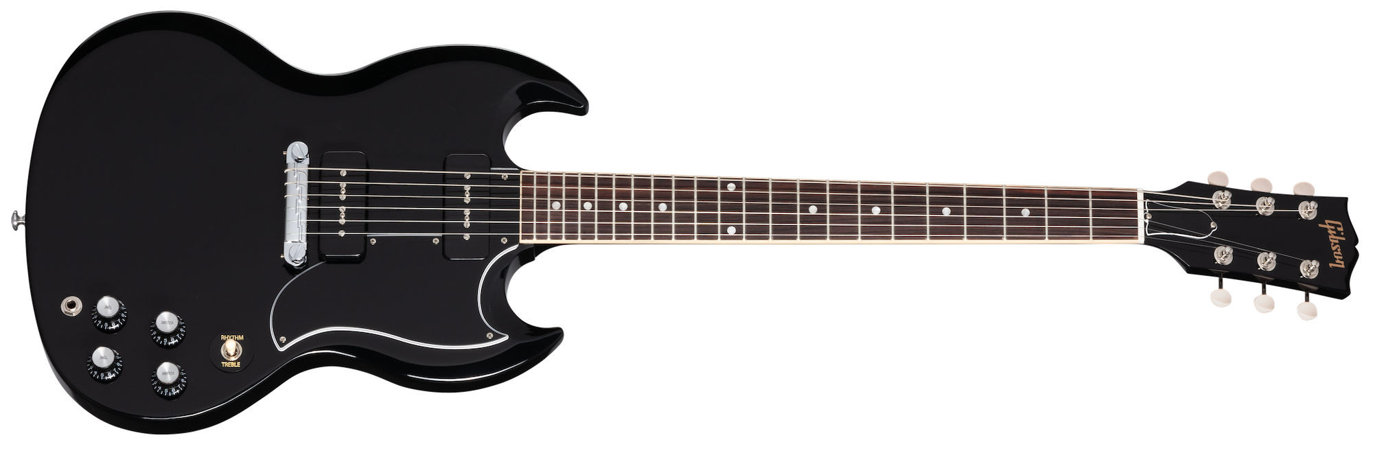 SG Special i Ebony-finish leverer den rå, umiddelbare energien som har gjort SG-modellen til en rockestandard gjennom flere tiår. Den lette mahognikroppen og Slim Taper-halsen gir en rask og komfortabel spilleopplevelse, mens de to P-90-pickupene kombinerer fyldig, snerrende karakter med varm og klar respons ved renere innstillinger.