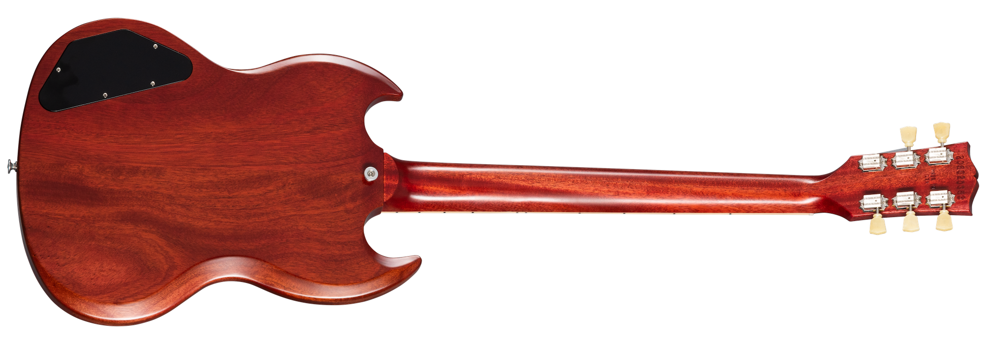 Maestro Vibrola-systemet gir myke vibratoeffekter og utsmykkes av den tradisjonelle Lyre-graveringen. Open-coil 60s Burstbucker-pickuper leverer en autentisk, rå og artikulert vintage-topp med ekstra kraft. Håndloddet elektronikk med Orange Drop-kondensatorer sikrer stabil og musikalsk respons. Dette er en SG for spillere som ønsker både klassisk karakter og moderne pålitelighet.