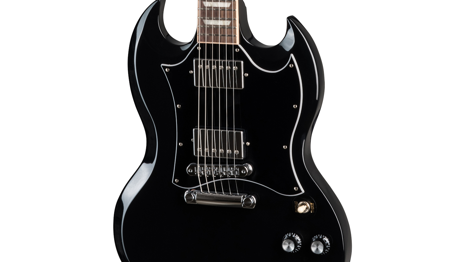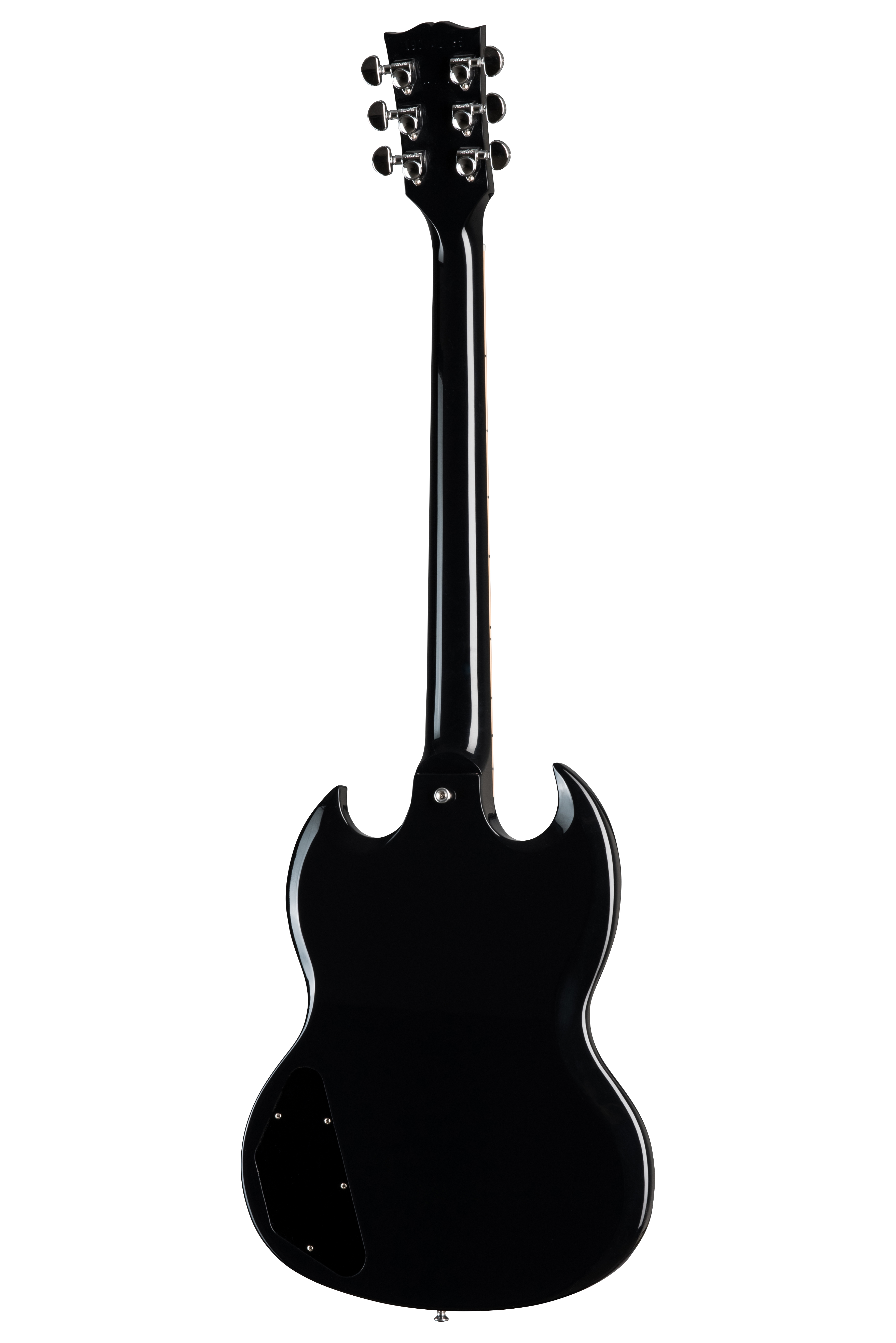 The Gibson SG Standard rocks the classic looks and features associated with the late 60's style SG models sought after by many. A rounded profile mahogany neck, bound rosewood fingerboard, long tenon 19th fret neck joint, and a solid mahogany body provide the backbone for singing sustain. The 490R and 490T Alnico II pickups provide the power to drive. A black, 5-ply, full-face pickguard set this SG Standard apart from others... a truly versatile classic.