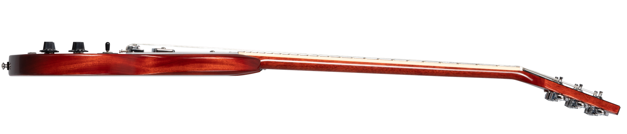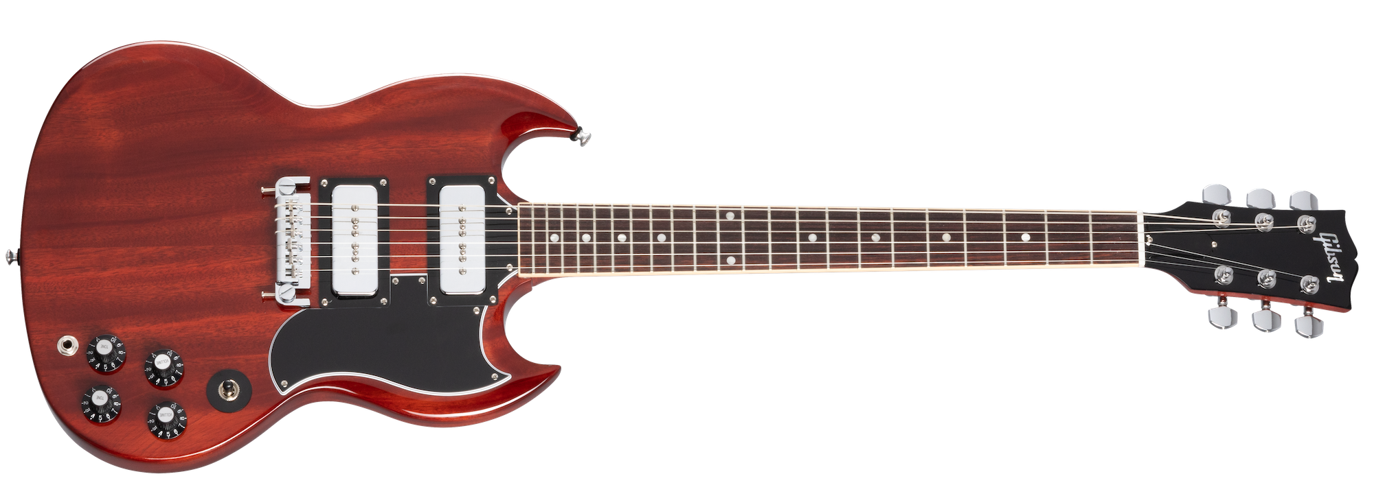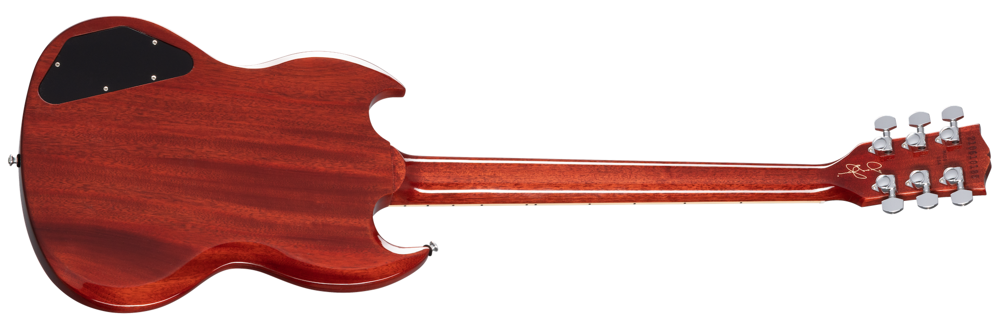 Gibson Tony Iommi “Monkey” SG Special er en hyllest til den tungt modifiserte 1964 SG-en som formet sounden til Black Sabbath og la grunnlaget for heavy metal. Modellen bygger på Iommis originale spesifikasjoner med mahognikropp, rund halsprofil, cream-bindet gripebrett og klassiske P-90-pickuper som leverer den rå, aggressive tonen kjent fra de tidligste Sabbath-innspillingene.