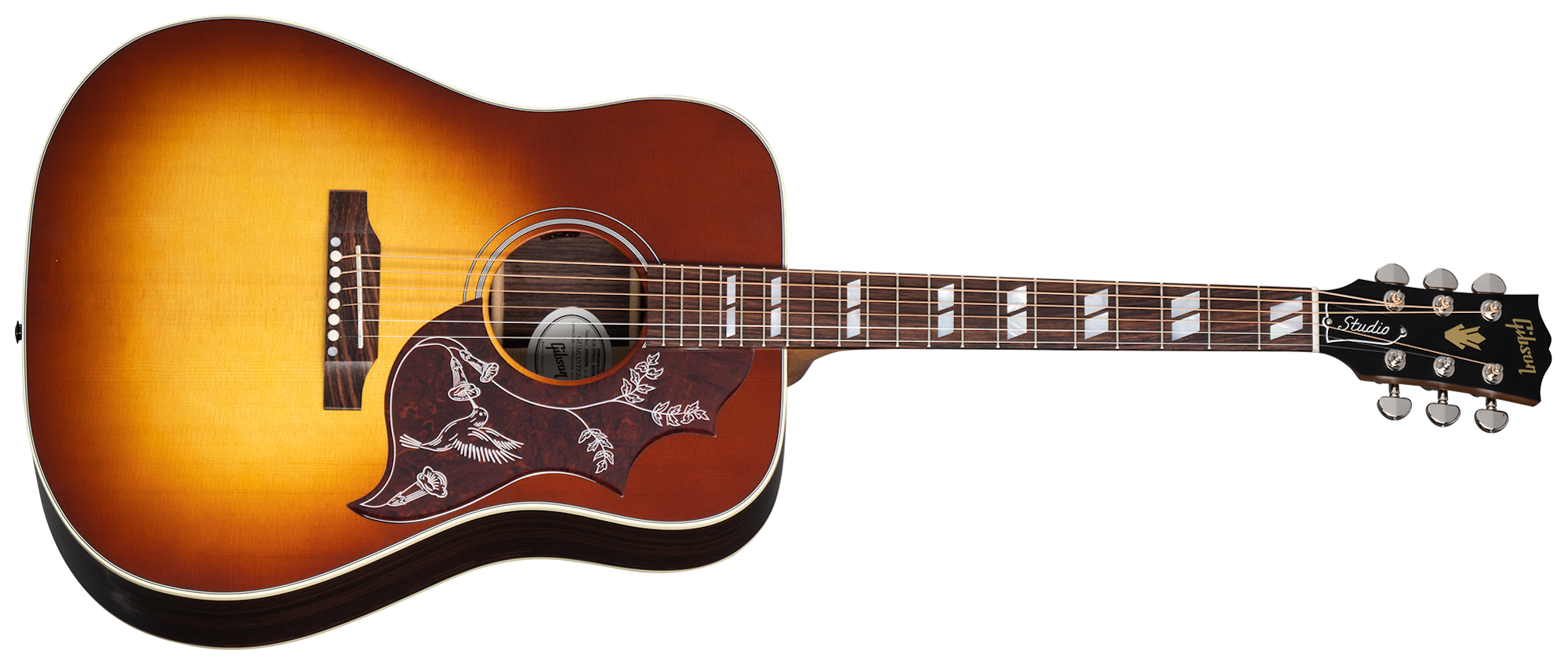Hummingbird Studio Rosewood fortsetter Gibsons lange historie med å produsere verdenskjente kroppsdøserdesign, som Hummingbird, Dove og Songwriter-modeller. Den oppdaterte Hummingbird Studio Rosewood er håndlaget med bruk av alle solide trematerialer og er utstyrt med en Advanced Response-profilet utile-hals for jevn og enkel spillbarhet. Den har en full dyp kropp for forbedret tonal respons og en satin nitrocellulose finish, noe som gir den et utseende og følelse av en lenge verdsatt musikalsk følgesvenn. Tilgjengelig i Satin Natural og Satin Rosewood Burst finish (inkludert en venstrehendt modell), har Hummingbird Studio Rosewood en L.R. Baggs Element Bronze aktiv under-sadel piezo pickup for enkel plug-and-play-studio kvalitet hvor som helst. Pakket i et inkludert hardt skall-etu for bærbarhet.
