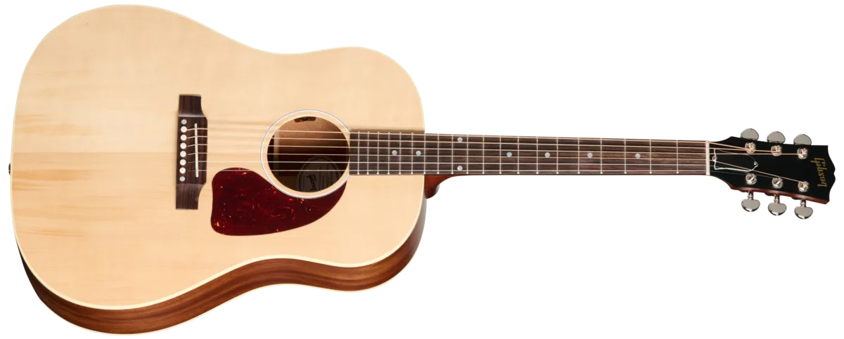 Gitaren er bygget med heltre konstruksjon, med massiv gran i toppen og massiv mahogni i bunn og sider. Dette gir en rik og balansert klang med varm bass, tydelige mellomtoner og god projeksjon – en signaturlyd som har gjort J-45 til en favoritt blant musikere siden 1940-tallet.