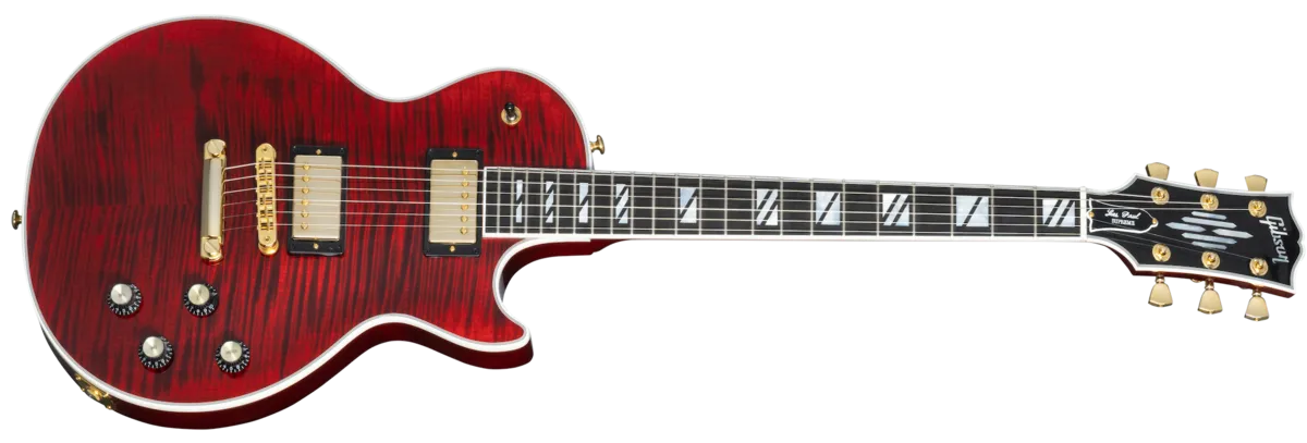 Gibson Les Paul Supreme WR (Wine Red) representerer en av de mest luksuriøse og moderne tolkningene av den ikoniske Les Paul-modellen. Med utsøkte detaljer og førsteklasses materialvalg kombinerer den klassisk Gibson-tone med avansert fleksibilitet.