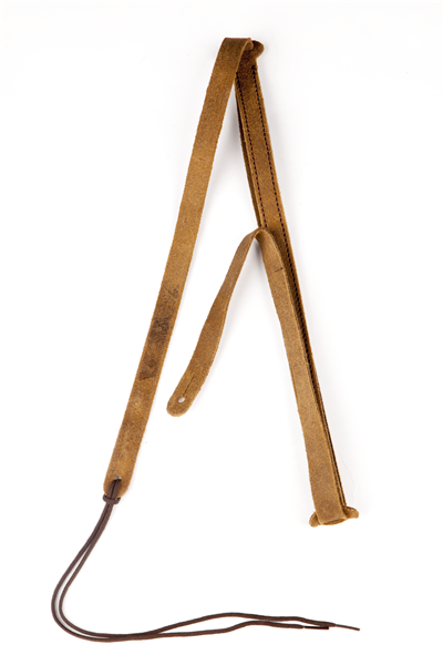 The Gretsch Mandolin Strap is 1/2" wide and made of soft suede brown leather and is adjustable from 34" to 45".