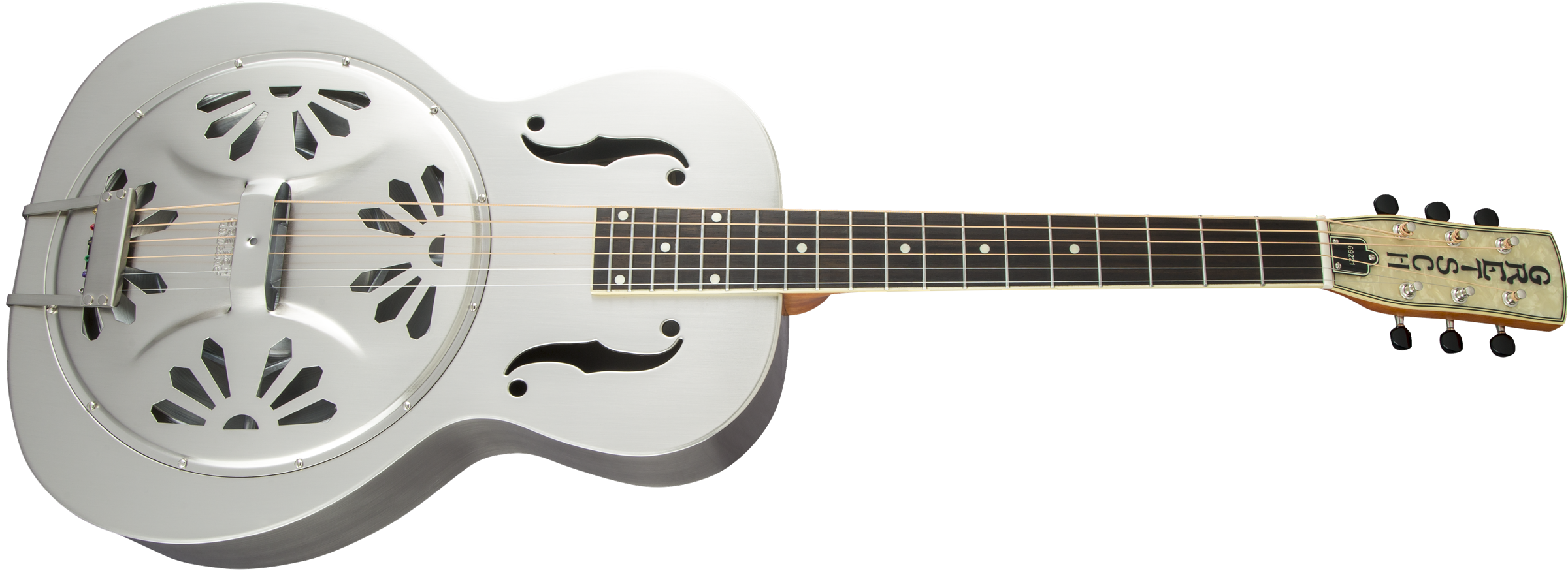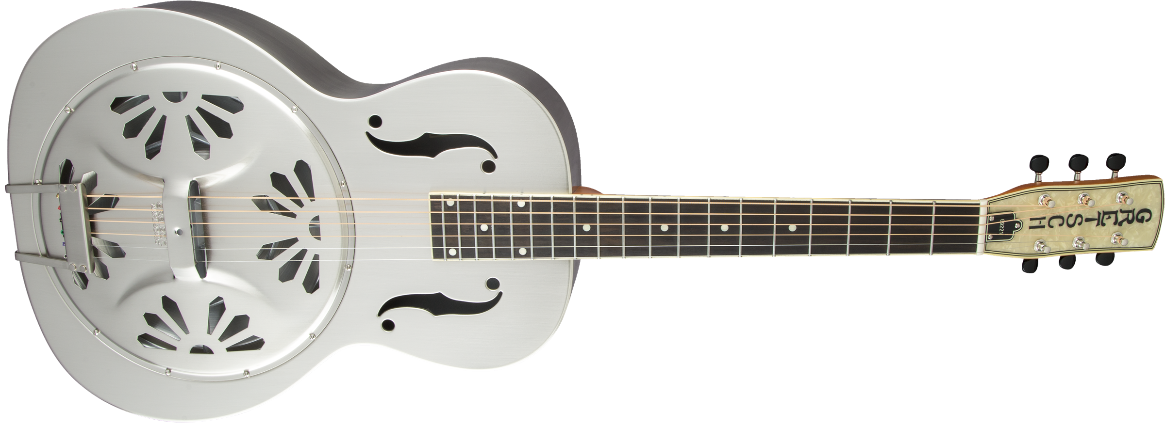 Incorporating a special combination of an all-steel body with our renowned Gretsch Ampli-Sonic™ "Spider" cone diaphragm spun from 99 percent pure aluminum, the Bobtail Steel offers a new tonal signature for your musical creations. Other features include a round mahogany neck, rosewood fingerboard, Grover® Sta-Tite™ machine heads and Fishman® Nashville pickup. Optional G2180 Resonator Gig Bag (#996-481-000).