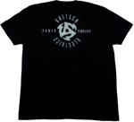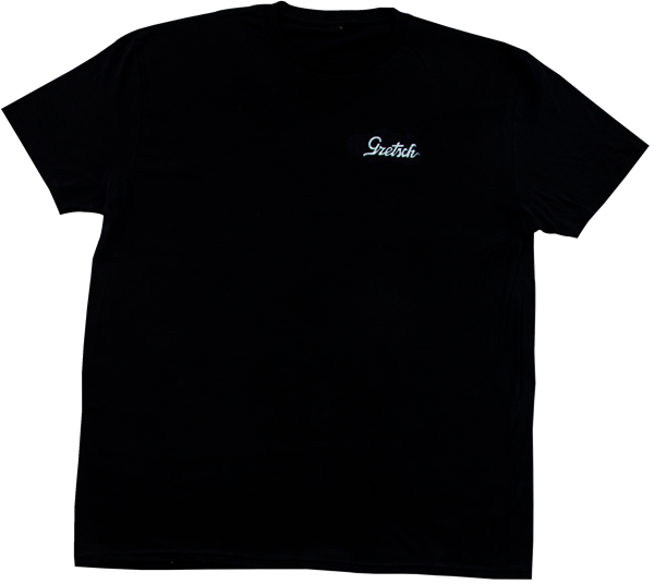 This Gretsch® Power & Fidelity™ t-shirt is soft and stylish. It has a Gretsch script logo on the front, with the Power & Fidelity graphic on the back. 100% cotton.