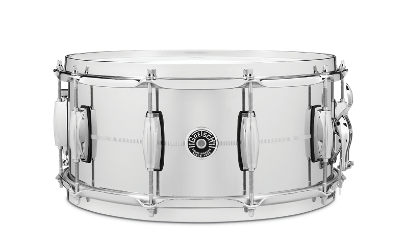 Chrome Over Steel';chrome plated 2 mm steel shell;45° bearing edge;Gretsch '302' steel hoops;Lightning throw-off;Remo heads;Made in U.S.A.;