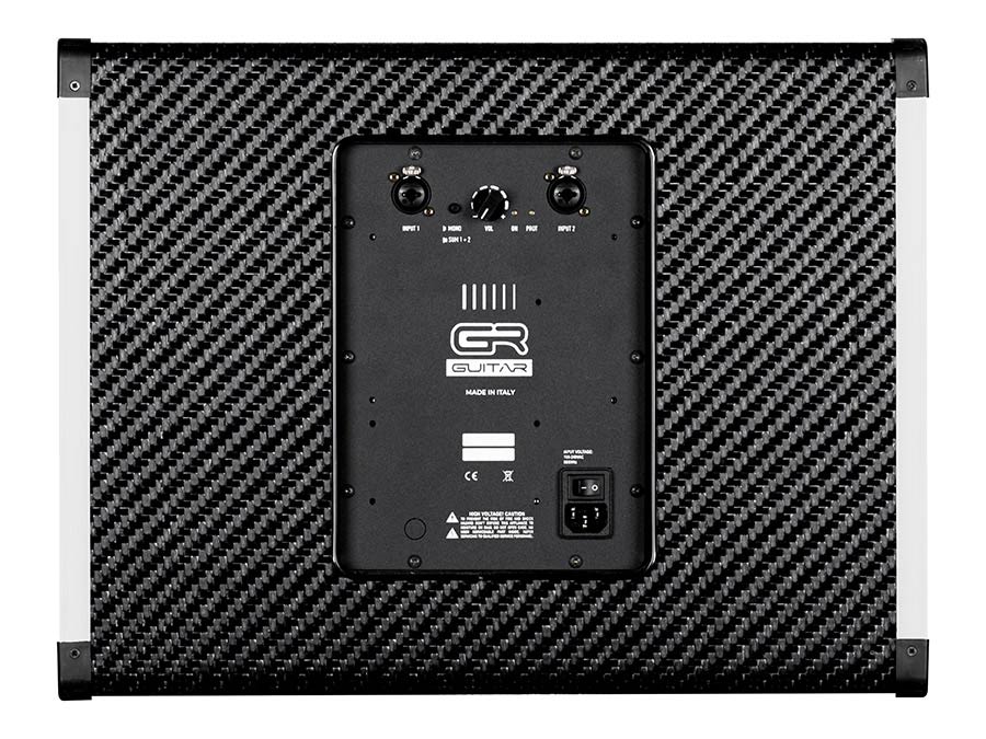 Konstruksjonen i karbonfiber bidrar til svært lav totalvekt, samtidig som kabinettet er bygget for profesjonell bruk. Frontmontert bassrefleks, innganger for både jack og XLR samt automatisk spenningsbytte mellom 115 VAC og 230 VAC gjør modellen fleksibel i ulike oppsett. GR Guitar oppgir at alle produktene deres er 100 % laget i Italia.