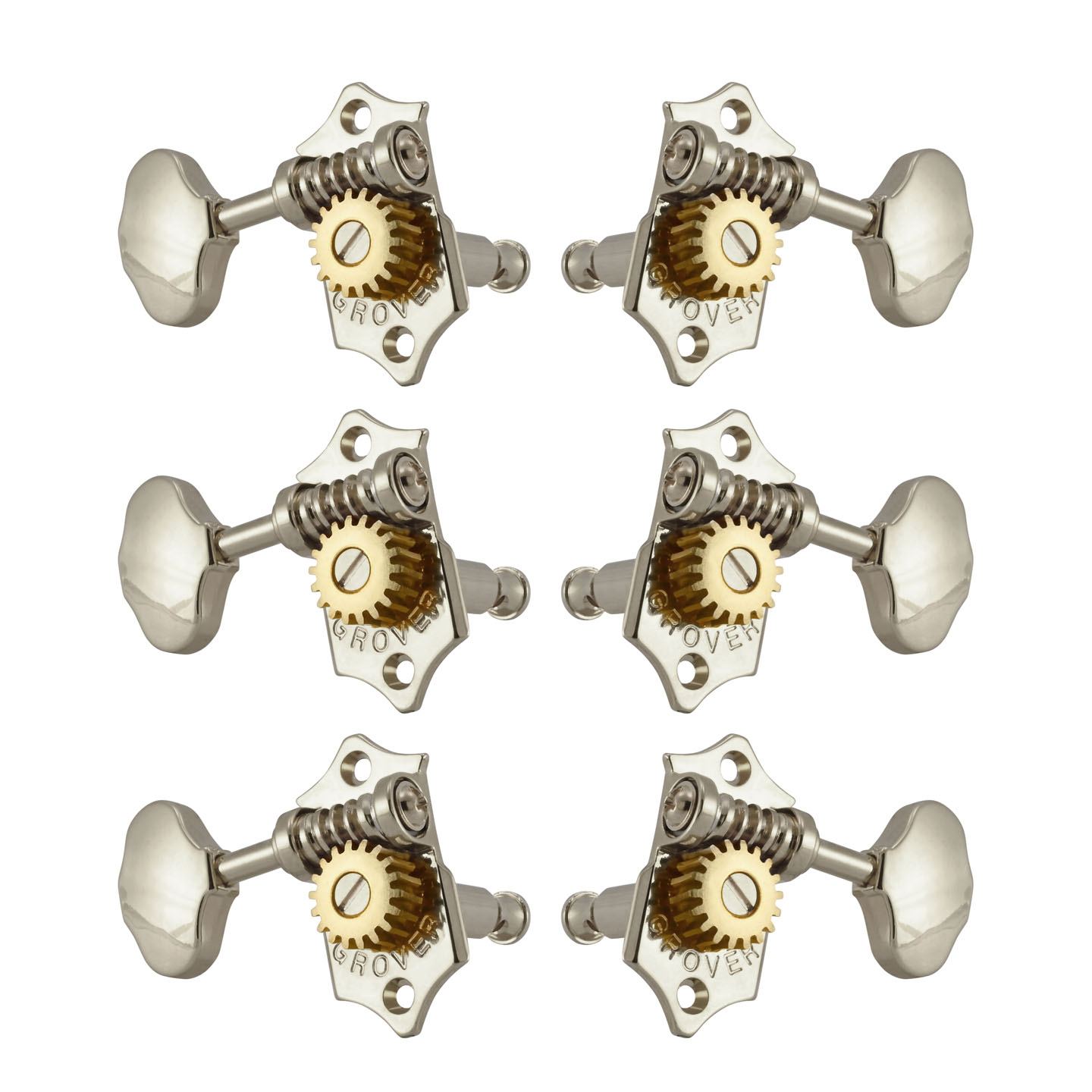 Denne varianten er tilpasset vertikal montering for solide gitarhoder, leveres som sett med 3 treble og 3 bass, og inkluderer nødvendig monteringshardware. Utførelsen i nikkel gir et klassisk utseende som passer både vintage- og moderne instrumenter.