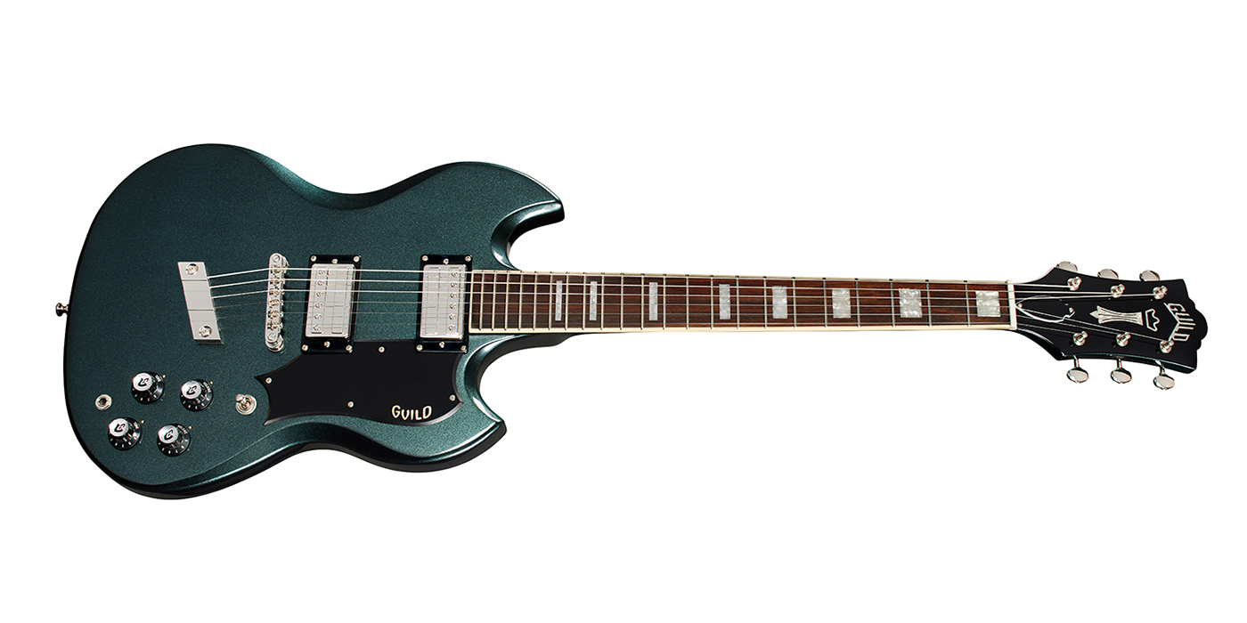 • Headstock-detaljer: Guild Peak og Chesterfield inlays