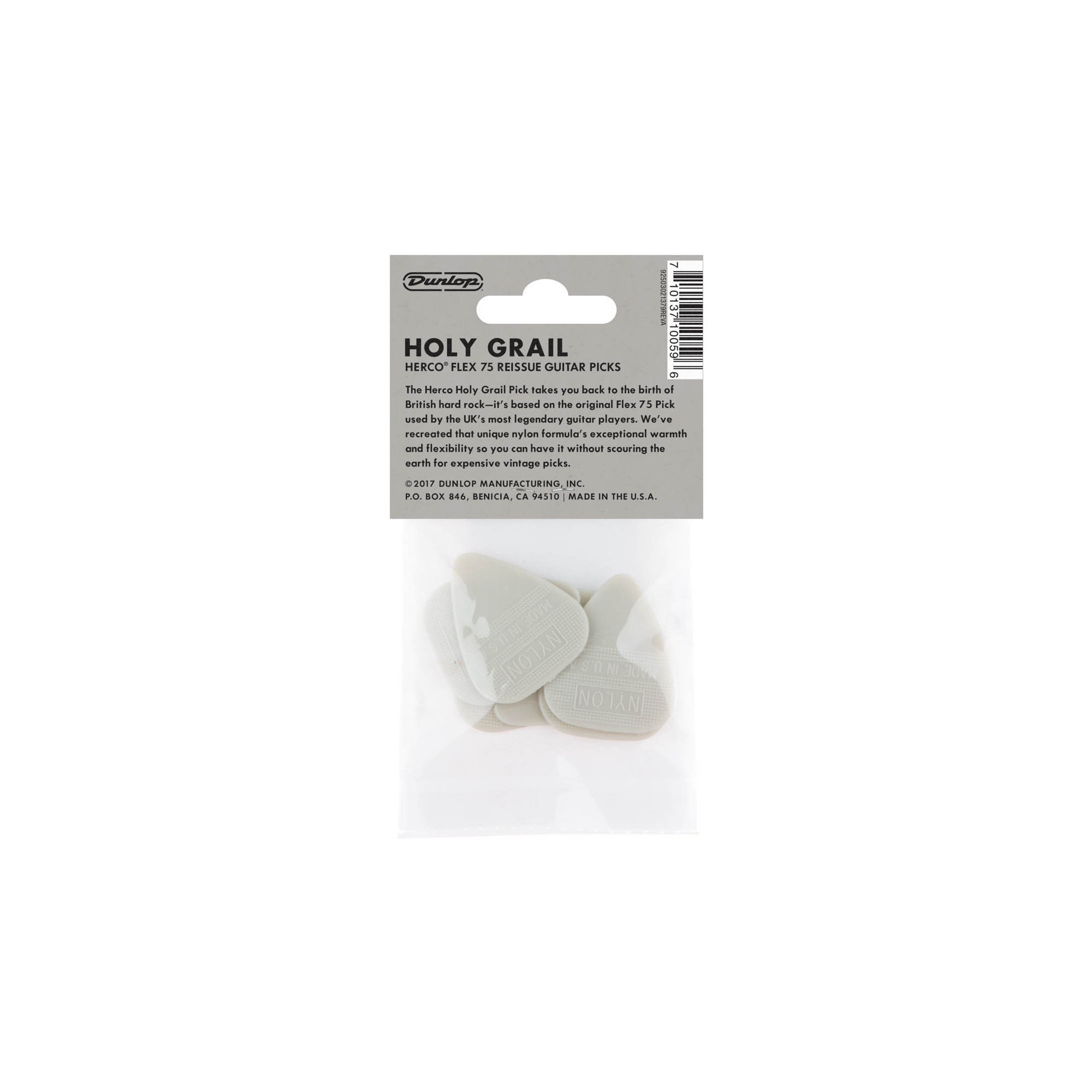 Herco HE777P Holy Grail er et sett med gitarplekter laget i polykarbonat og levert i pakke med seks stk. Plektrene er utviklet for bruk på gitar og gir et tydelig anslag mot strengene.