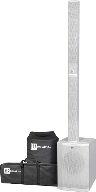 HK Audio POLAR 10 MK2 er et komplett aktivt søylehøyttalersystem med 2000 W toppeffekt, 4-kanals mikser, Bluetooth 5.0 og TWS-støtte. Det gir høyoppløst og balansert lyd for både tale, sang og instrumenter, og er ideelt for konserter, events, DJ-bruk og presentasjoner.