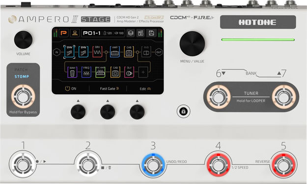 Ampero II Stage er en profesjonell IR multi-effektpedal med et bredt utvalg av IR-forsterkere, kabinetter og ikoniske effekter. Den har innebygd looper, tuner, USB-lydgrensesnitt og 300 forhåndsinnstillinger. Med balanserte/ubalanserte tilkoblinger, MIDI, FX-loop og Bluetooth, er den perfekt for scenebruk.