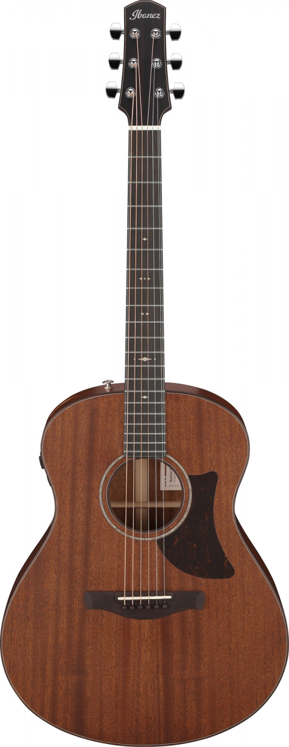 Ibanez All Solid Advanced Auditorium Western Gitar m/Mic. – AAM740E-LG. Natural Low Gloss.Avansert auditorium:For dette formål strevde Ibanez etter å skape noe helt nytt, en serie instrumenter, gjennomsyret av gammeldagse, håndbygde og sjeldne kvaliteter.Ved å bruke tresorter av høyeste kvalitet og laget med kompromissløs oppmerksomhet på detaljer, representerer disse instrumentene toppen av Ibanez akustiske gitardesign og tone.Kroppsformen er skapt for å oppnå høy spillbarhet kombinert med en velbalansert og velklingende lyd som «setter seg» like godt i studio som på scenen, enten man spiller sologitar eller i ensemble.En spesialdesignet X-M-avstivning gir bred lyd og god projeksjon (hvordan instrumentet kaster lyden). En rik og lang sustain som fungerer bra både for plekter og fingerspill.A.I.R. Port:AAM740E har Ibanez sin nye A.I.R. Port konstruksjon. Acoustic-Information-Response.A.I.R. Port er for bedre lytting for gitaristen. Hull i sargen mot deg. Det er en flott funksjon. En klar trend blant akustiske gitarer, men ingen store merker tilbyr det til en overkommelig pris. Pluss, det de andre har, er i grunnen bare et hull som er boret inn i kroppen. Ibanez følte at det måtte være en bedre måte å lytte bedre på. Etter å ha prøvd mange forskjellige størrelser og typer hull og design, slo de seg på det perfekte lydportdesignet, og plasserte vinklede treklosser som kaster lyden ut av porten. De bestemte seg også for å bruke den på et bredt spekter av modeller.Kroppen har Solid African Mahogany topp, sider og rygg.Å få elektronikk, forforsterkere og mikrofoner inn i akustiske instrumenter er alltid et kompromiss med den akustiske lyden til instrumentet. På AAM-modellen er dette kompromisset gjort så lite som mulig ved å bruke en svært kompakt aktiv forforsterker, for å påvirke den akustiske lyden minst mulig.Gitaren beholder sin akustiske tone samtidig som den har en stabil, velklingende, naturlig og forvrengningsfri plugget lyd.