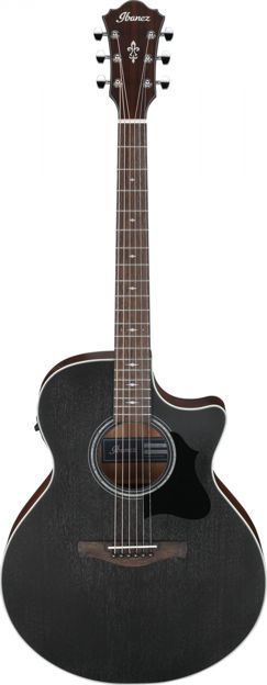 Ibanez AE Performer Western Gitar m/Mic. – AE140-WKH. Weathered Black Open Pore.AE-kroppsformen har moderne designelementer for å oppnå høy spillbarhet og skape en velbalansert lyd som følger konseptet til AE-serien.Kombinasjonen av den spesialdesignede Scalloped X Bracing og Tone Projection Back Bracing, produserer en allsidig lydkarakter.En rik sustain er gitt, som fungerer for både finger- og plekterspill. Kroppen i mahogni genererer en treaktig, varm tone med en mykrespons ved fingerspill og gir kraftige høye mellomtoner med en klar projeksjon. Gripebrettinnleggene gir også gitaren et sofistikert preg.A.I.R. Port:AE140 har Ibanez sin nye A.I.R. Port konstruksjon. Acoustic-Information-Response.A.I.R. Port er for bedre lytting for gitaristen. Hull i sargen mot deg. Det er en flott funksjon. En klar trend blant akustiske gitarer, men ingen store merker tilbyr det til en overkommelig pris. Pluss, det de andre har, er i grunnen bare et hull som er boret inn i kroppen. Ibanez følte at det måtte være en bedre måte å lytte bedre på. Etter å ha prøvd mange forskjellige størrelser og typer hull og design, slo de seg på det perfekte lydportdesignet, og plasserte vinklede treklosser som kaster lyden ut av porten. De bestemte seg også for å bruke den på et bredt spekter av modeller.