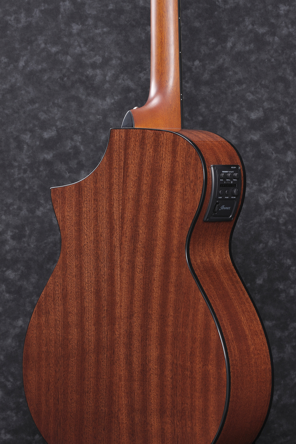 AEWC11-TCB (Transparent Charcoal Burst).Som industriledende innen bruk av eksotiske tonewoods, fortsetter Ibanez å innovere med sin nye AEW serie. Denne friske tilnærmingen smelter sammen i en klassisk grantopp med en elegant eksotisk tonewood bakside og sider.Den tynnere, forsterker-vennlige kroppen til disse nye akustisk-elektriske gitarene gjør dem til det perfekte valget for arbeidende singer-songwriters. En myk florentinsk utskjæring gir enkel tilgjengelighet helt til 17. bånd.Fishman Pickup og Ibanez Preamp leverer utmerket reproduksjon og kontroll av tonale egenskaper og tilbyr enkel betjening. De eksotiske tonewoods gir hver modell en særegen tone og utseende som vil gi deg oppmerksomhet og inspirere din fantasi. La deg fange av storheten i AEW-serien.Spesifikasjoner:• AEWC kompakt kropp.• Gran topp.• Sapele bakside og sider.• Nyatoh-hals, sateng finish.• Valnøtt fretboard og bridge.• Akryl rosett.• Chrome Die-Cast stemmemekanikk.• Fishman Sonicore Piezo pickup.• Ibanez AEQ-SP1 preamp m/innebygd tuner.• 1/4 output.Halsen:• Skala 634mm.• Bredde ved toppsadel: 43mm.• Bredde ved 14. bånd: 55mm.• Tykkelse ved 1. bånd: 20mm.• Tykkelse ved 7. bånd: 21mm.• Radius 400mmR.
