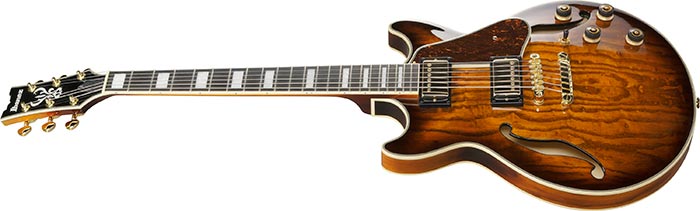 Den mindre hollowbody-kroppen gir god spillbarhet og balansert respons, godt egnet for både scene- og studiobruk.