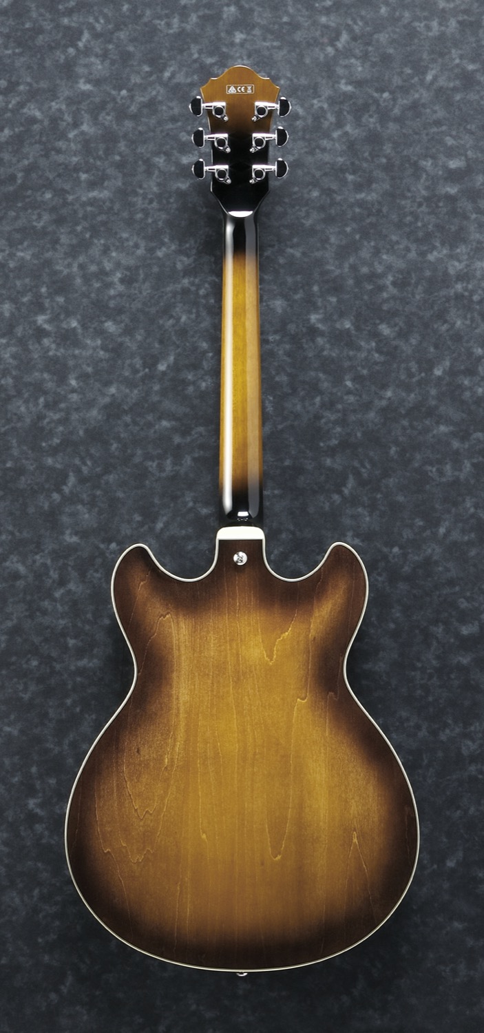 AS73-TBC (Tobacco Brown). Artcore.AS er en Semi-Hollow gitar som er bygget for å håndtere nesten hvilken som helst musikkstil du spiller. Mikrofonene er montert i en senterblokksom går gjennom hele kroppen for å eliminere sirkulær følsomhet, og for å oppnå mere sustain.En Semi-Hollow gitar med høy spillekomfort og tilgjengelighet og med et veldig bredt spekter av bruksområder. Hvis du spiller blues, rock, jazz eller pop, er dette en perfekt serie for deg.Ibanez introduserte Artcore i 2002 og den har vært Hollow-Body førstevalget for musikere i de siste 10 årene.Artcores kombinasjon av kvalitet og rimelige pris har skapt legioner av fans fra forskjellige sjangre som blues, country, rock og jazz.Musikere kan finne alt fra renheten til en Old School jazz-kasse til en skikkelig Semi-Hollow rockegitar.Artcore er høyt respektert for sin tone og sustain og for måten de holder stemmingen på, samtidig som serien fortsetter å flytte grensene framover innen gitarbygging.Spec:• AS Artcore Nyatoh set-in neck.• Linden top, back and sides.• Bound Walnut fretboard with Acrylic block inlay.• Medium frets.• Gibraltar Performer bridge.• Quik Change III tailpiece.• Classic Elite (H) neck pickup (Passive/Ceramic).• Classic Elite (H) bridge pickup (Passive/Ceramic).• Chrome hardware.Neck:• Scale: 628mm/24.75 .• Width at nut: 43mm.• Witch at 22 fret: 57mm.• Thickness at 1st fret: 21mm.• Thickness at 9th fret: 24mm.• Radius: 305mmR.Body:• Length: 19 1/4 - 489mm.• Width: 15 3/4” - 400mm.• Max Depth:2 5/8 - 67mm.Passande etui: MS100C.Passande bag: IAB540BK.