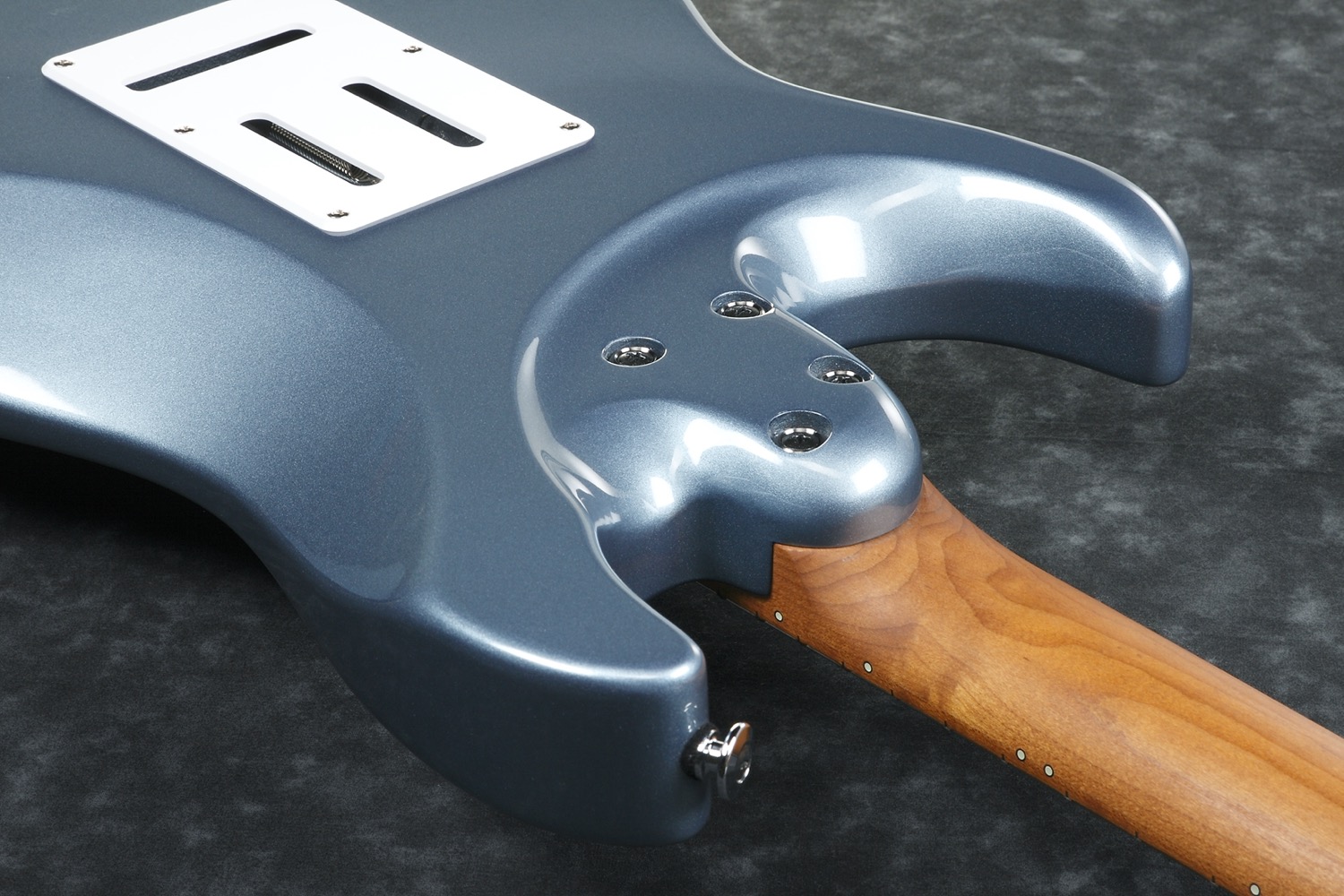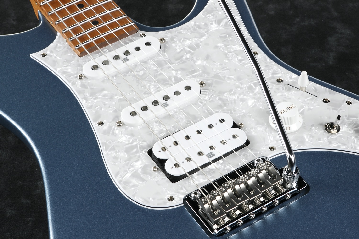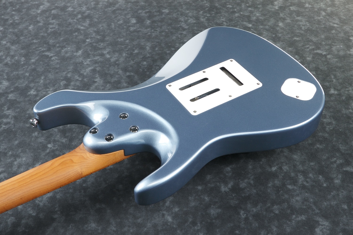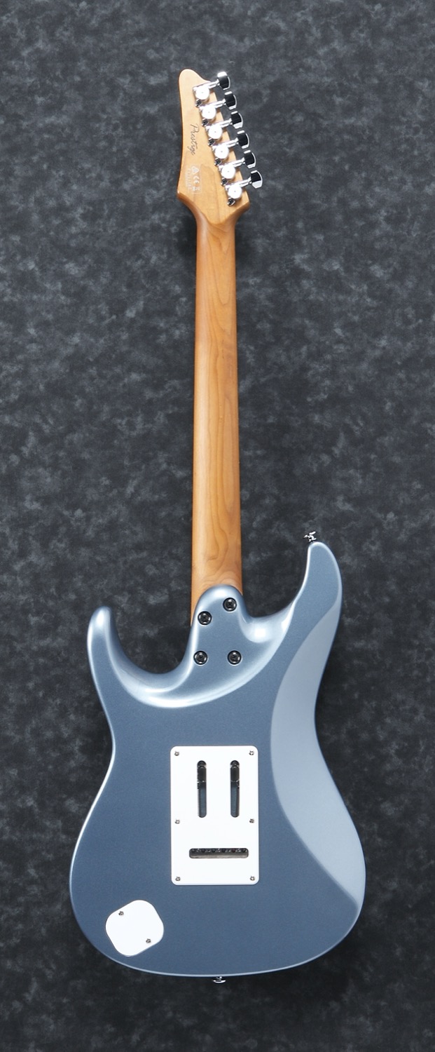 AZ2204-ICM. (Ice Blue Metallic) Prestige. Made in Japan.AZ - Players Player Project -AZ er resultatet av flere års testing, med mange av verdens beste gitarister som testpiloter, med det formål om å produsere den ultimate Players Player gitaren. Altså et ekstremt vellydende, lettspilt og stabilt instrument som man kan spille praktisk talt alle musikkstiler på. Stekt/bakte lønnehalser for å gjøre den stabil uansett hvor du turnerer på planeten og uansett hvor du spiller. Bånd i rustfritt stål for å gjøre dem nesten uslitelige og for at de skal føles glatte og velpussede uansett hvor mye du spiller. En perfekt fungerende stol med et vib.arm feste som ikke glipper uansett hvor mye du sliter og drar i vib.armen. Og alt dette med ordet TONE som førsteprioritet. Ingen spesifikasjoner i verden betyr noe om det ikke høres fantastisk ut, og det gjør dette, det høres bedre ut enn fantastisk.Serien er tilgjengelig i to versjoner med hals med 24 eller 22 bånd.24 båndversjoner med HH pickup-konfigurasjon og 22 med HSS.AZ halsen er en moderne hals med det Ibanez kaller den ovale C-profilen. En 1 bits Prestige hals i S-TECH behandlet lønn. S-TECH er nitrogen-varmebehandling av treverket og er en videreutvikling av det som vanligvis kalles stekt/bakt trevirke. Noe som på norsk kort sagt betyr at treverket gjennomgår en varmebehandling i en nitrogenfylt oppvarmingsprosess for å fjerne vann og harpiks fra treverket. Det gjør treverket lett, stabilt, holdbart og fullstendig upåvirket av endringer i fuktighet. Treverket blir også vanntett og trenger derfor ikke lakkeres. Disse egenskapene gjør at halsen er ekstremt resonant, har lav fysisk vekt og mye sustain (de samme egenskapene som virkelig godt, gammelt trevirke noen ganger kan ha). En tydelig tone med uovertruffen toneseperasjon. Gitaren synger på en helt annen måte enn tilsvarende ubehandlet trevirke og er flere hundre ganger mer stabil. Halsen er til slutt behandlet med olje som gir gitaren en godt innspilt trefølelse. Glem den klissete lakken man sitter fast i.Specs:• AZ Oval C S-TECH WOOD roasted maple 1pc neck.• Super All Access Neck Joint.• Newly developed Seymour Duncan/Ibanez collaboration pickups.• dyna-MIX 9 switching system w/Alter switch.• Ibanez T1802 synchronized bridge w/Titanium saddles (made by Gotoh ®).• Gotoh ® Magnum Lock machine heads w/H.A.P.• 22 frets.• S-TECH wood roasted Maple fretboard w/black dot inlay.• Luminescent side dot inlay.• Jumbo Stainless steel frets w/Prestige Fret Edge Treatement.• Alder body• Seymour Duncan Hyperion (S) neck pickup.• Seymour Duncan Hyperion (S) mid. pickup.• Seymour Duncan Hyperion (H) bridge pickup.• Chrome hardware.• Hardcase• 648mm/25.5 scale.