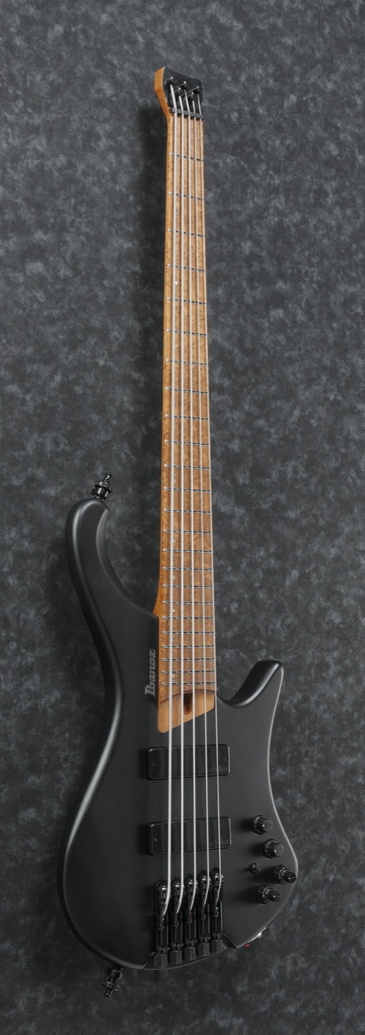 EHB1005-BKF. (Black Flat) Elbas med gigbag. Headless 5-str. Bass Workshop. EHBs hodeløse konstruksjon og spesialdesignede kropp gjør det mulig for utøveren å opprettholde en lignende spilleposisjon, enten han sitter eller står. Den konturerte, ergonomiske designen og kammeret i kroppen gir et lett, godt balansert og behagelig instrument som er utmerket til lange sett eller øvelser. Den øvre halvdelen av baksiden av kroppen er også skrå, noe som gjør at bassen kan hvile litt nærmere utøverens kropp, for bedre kontroll og en mer ergonomisk følelse.
