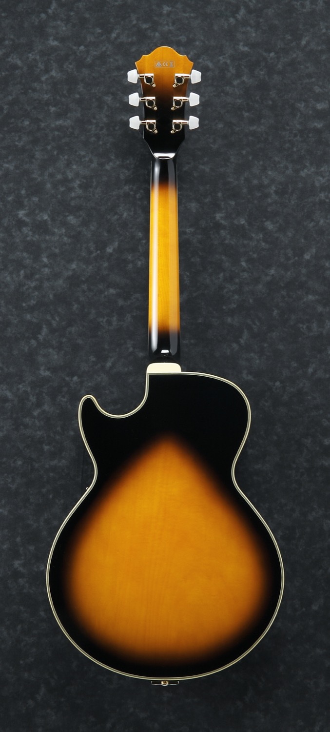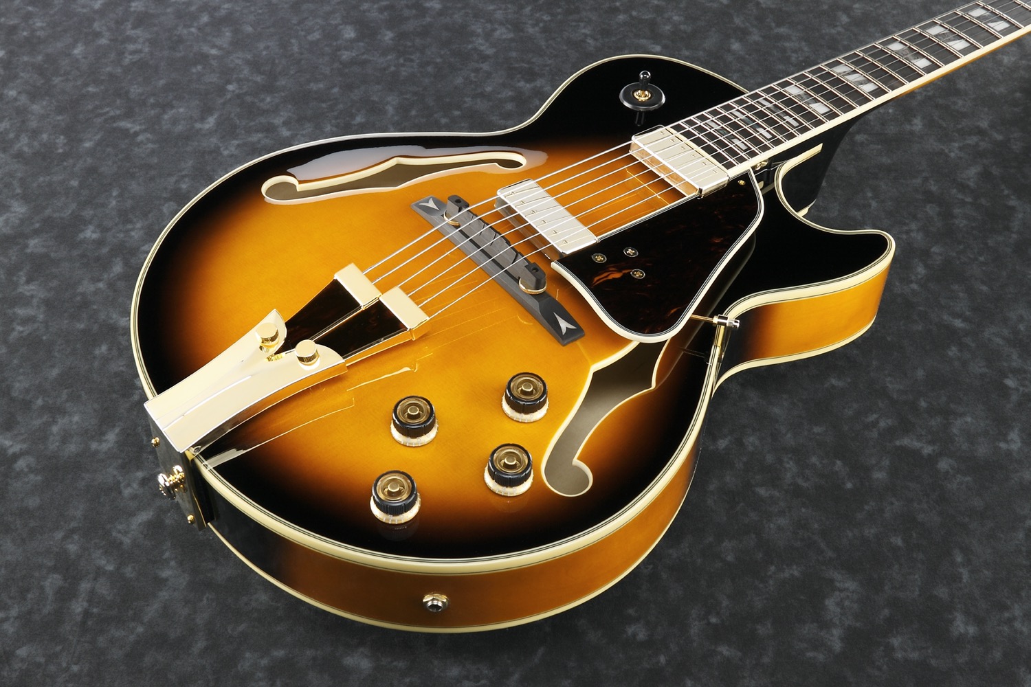 GB10-BS (Brown Sunburst) George Benson signaturmodell.Ibanez George Benson GB10 modellen har vært på markedet siden 1977 og kan på ingen måte sees på som noe annet enn en klassiker innen jazzgitarmarkedet. En modell som har vært målestokken for jazzgitarer i liten størrelse siden den gang. Her snakker vi om gitarer i det absolutte toppnivået, en våt drøm for alle som noen gang har tenkt på å spille jazz.Spec:• 3-pc GB set-in maple neck.• Spruce top, maple sides and back.• Bound ebony fretboard with pearl and abalone block inlays• 22 meduim frets with Prestige Fret End Treatment.• Ebony bridge - GB10 tailpiece.• GB Special pickups.• Flatwound strings.• Hardcase included.Neck:• Scale: 628mm/24.75 .• Width at nut: 43mm.• Width at last fret: 57mm.• Thickness at 1F: 20mm.• Thickness at 12F: 23mm.• Radius: 305mmR.Body Dimensions:• Length: 18 7/8 - 479mm.• Width: 14 3/4” - 375mm.• Max Depth:3 3/8 - 86mm.