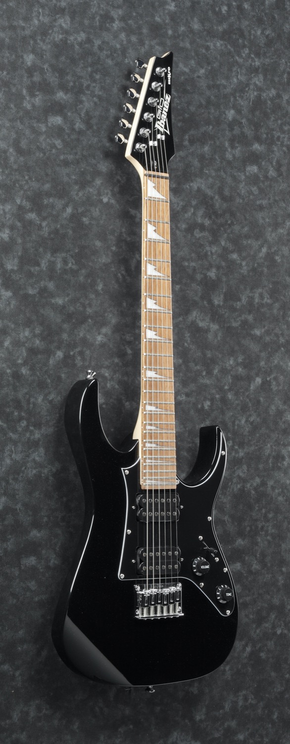 GRGM21-BKN (Black Night) MiKro.Små hender lager stor lyd med Ibanez MiKro bassene. Disse kompakte instrumentene har mange av egenskapene til sine større kolleger.Spec:• GRGM Maple Neck.• 564mm/22.2” scale.• Treated New Zealand Pine fretboard.• Sharktooth inlays.• Medium frets.• Poplar body.• Fixed bridge.• Ibanez Infinity R (H) Neck PU.• Ibanez Infinity R (H) Stall PU.• Chrome hardware.