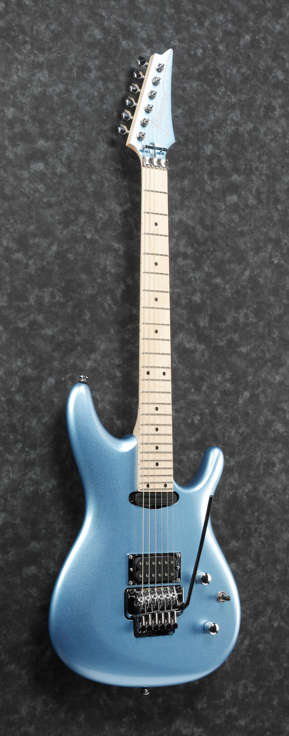 JS140M-SDL (Soda Blue) Joe Satriani SignatureGitaren som har vært Joe Satriani's hovedinstrument i mange år nå, er en litt annerledes fugl i Ibanez sitt sortiment. Med en litt annen nakkeprofil og spillefølelse til å være en Ibanez, er det en gitar som skiller seg ganske betydelig ut fra det Ibanez vanligvis gjør. Spillefølelsen kan kanskje beskrives som moderne vintage (og det er ganske åpenbart hvor han har hentet inspirasjon fra).Et instrument der det er tydelig at Joe tenkte tone, tone, spillekomfort, bredde og mer tone.Specs:• 1-PC Maple JS Neck.• Maple Fretboard.• Medium frets.• Basswood body.• Edge-Zero II tremolo.• Infinity R Neck PU.• Quantum Bridge PU.• Coil-tap switch on tone knob (push/pull).• Chrome hardware.Neck:• Scale: 648mm/25.5 .• Width at Nut: 42mm.• Width at Last Fret: 56mm.• Thickness at 1st: 20mm.• Thickness at 12th: 22.3mm.• Radius: 240mmR.