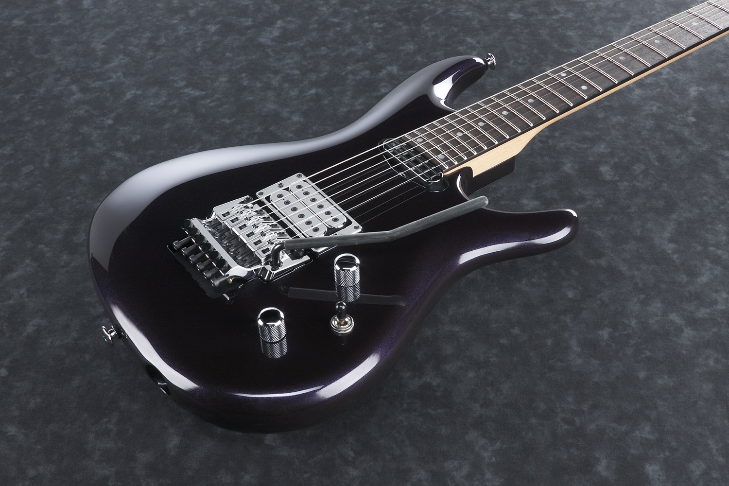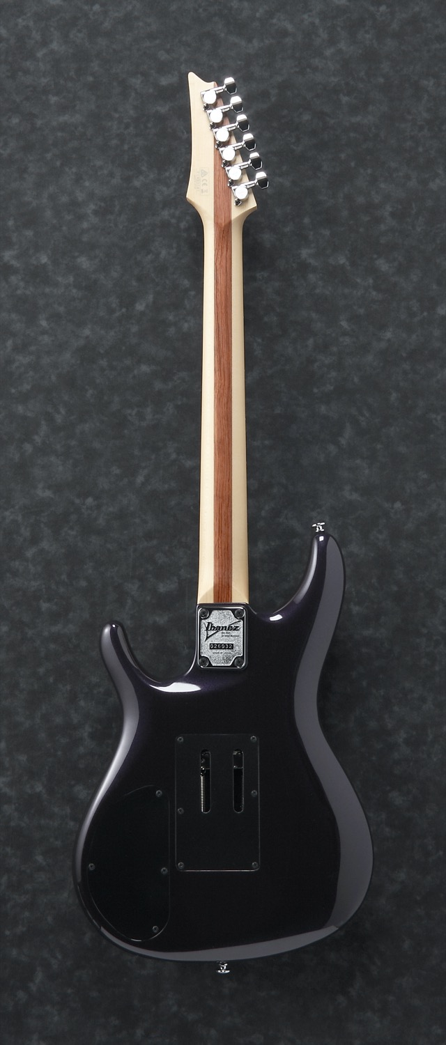 JS2450-MCP (Muscle Car Purple) Joe Satriani Signature.Gitaren som har vært Joe Satriani’s hovedinstrument i mange år nå, er en litt annerledes fugl i Ibanez sitt sortiment. Med en litt annen nakkeprofil og spillefølelse til å være en Ibanez, er det en gitar som skiller seg ganske betydelig ut fra det Ibanez vanligvis gjør. Spillefølelsen kan kanskje beskrives som moderne vintage (og det er ganske åpenbart hvor han har hentet inspirasjon fra).Et instrument der det er tydelig at Joe tenkte tone, tone, spillekomfort, bredde og mer tone.Spec:• 3-pc Maple/Bubinga neck with Rosewood Fretboard.• Mother of pearl Inlays.• Alder body.• W/6105 frets.• Ibanez original EDGE tremolo.• DiMarzio Satch Track (H) Neck PU.• DiMarzio Mo Joe (H) Bridge PU.• Hi-pass filter on volume control (push/pull)• Coil tap on tone control (push/pull).• Ultralite UTA20 tremolo arm.• Chrome hardware.• Hardcase included.Neck:• Scale: 648mm/25.5 .• Width at Nut: 42,8mm.• Width at Last Fret: 56.4mm.• Thickness at 1st: 20mm.• Thickness at 12th: 22.3mm.• Radius: 250mmR.