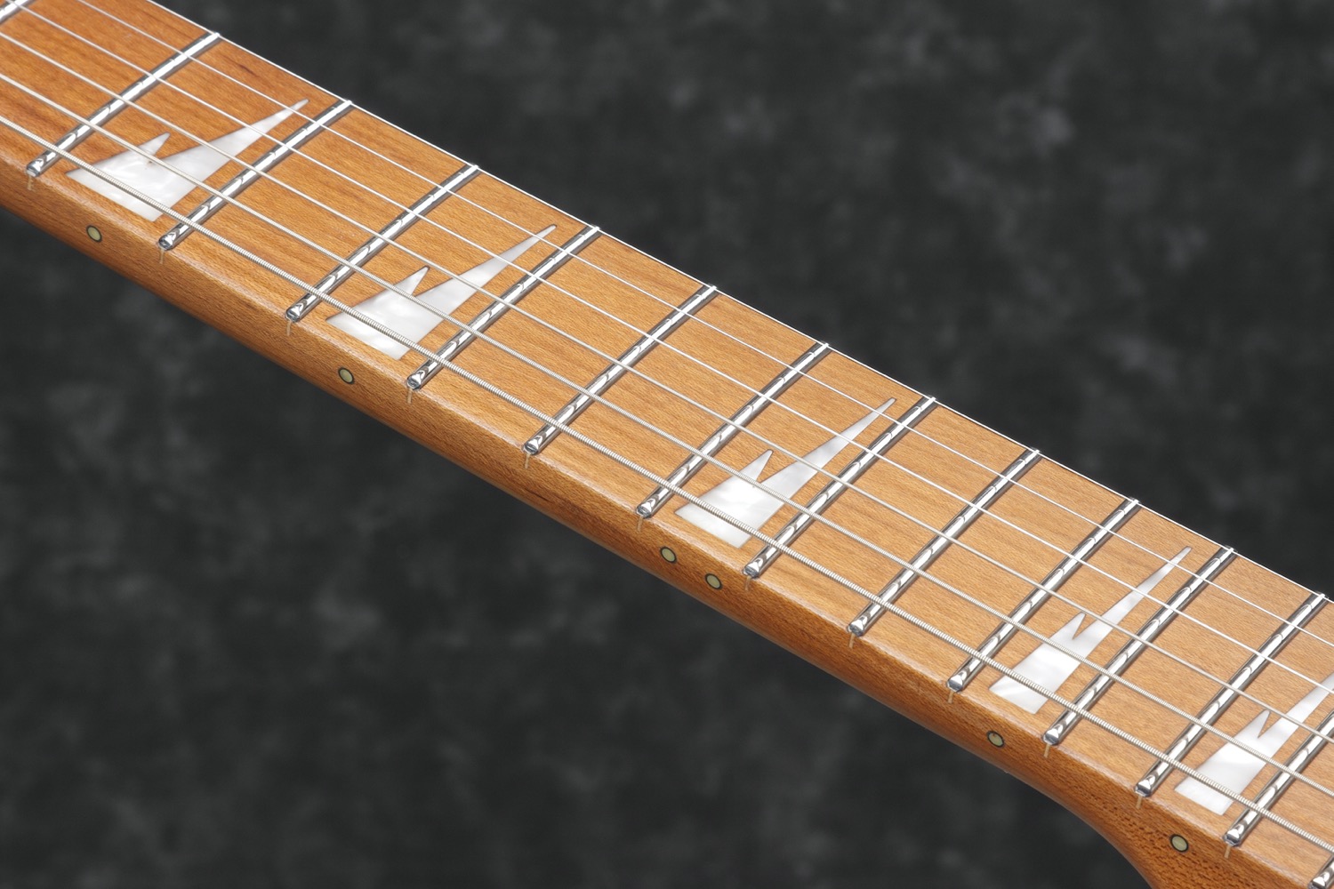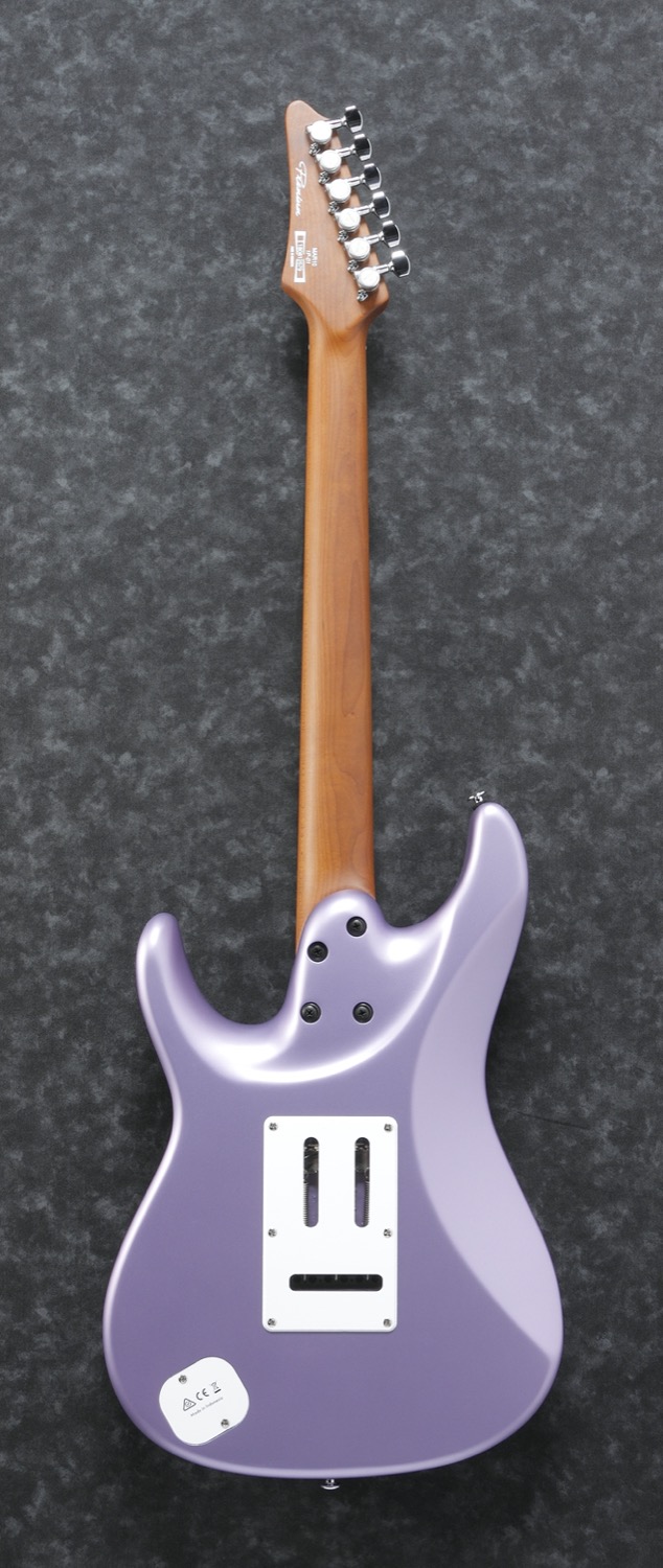 MAR10-LMM (Lavender Metallic Matte) Mario Camarena (Chon) Signatur.MAR10 er en AZ Premium basert modell laget for Mario Camarena i bandet Chon. Et band som anses å høre hjemme i den amerikanske Math Rock scenen, teknisk drevet spill i skeive taktarter uten å bruke tradisjonelle progressive metallgitarlyder.Specs:• AZ Oval C Roasted Maple 1 pc neck• Roasted Maple fretboard w/Sharktooth inlay• Luminescent side dot inlay.• Jumbo Stainless steel frets.• Graph Tech® nut.• Gotoh® MG-T Locking machine heads.• American Basswood body.• Ibanez T1502 tremolo bridge (Gotoh).• Seymour Duncan Hyperion (S) neck pickup.• Seymour Duncan Hyperion (S) mid. pickup.• Seymour Duncan Hyperion (H) bridge pickup.• Chrome hardware.• Gigbag included.Neck:• 648mm/25.5 Scale.• Width at nut: 42mm.• Width at last fret: 56.4mm.• Thickness at 1F: 20.5mm.• Thickness at 12F: 22.5mm.• Radius: 305mmR.