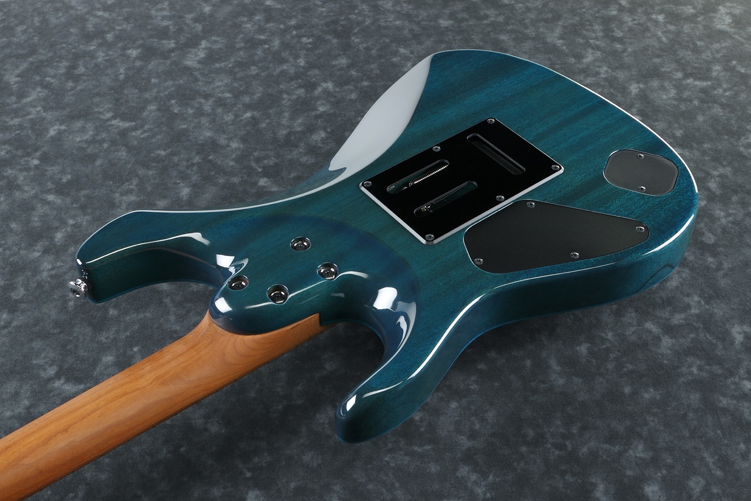 MM1-TAB. (Transparent Aqua Blue) Martin Miller Signature med hardcase.Foruten arbeidet som en av nettstedets mest populære instruktører/bidragsytere, holder Martin seg opptatt med innspillinger, klinikker, demonstrasjoner og turnéer over hele verden.Specs:• AZ Oval CS-TECH wood roasted Maple 1 pc neck.• S-TECH wood roasted Maple fretboard w/black dot inlay.• Luminescent side dot inlay.• Jumbo Stainless steel frets w/Prestige Fret Edge Treatement.• Flamed Maple top/American Mahogany body• Ibanez T1802 bridge (Gotoh)• Seymour Duncan Hyperion (H) neck pickup.• Seymour Duncan Hyperion (H) bridge pickup.• Chrome hardware.• Hardcase included.Neck:• 648mm/25.5 Scale.• Width at nut: 42mm.• Width at last fret: 56.4mm.• Thickness at 1F: 20.5mm.• Thickness at 12F: 22.5mm.• Radius: 305mmR.