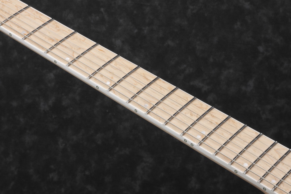 RG5120M-FCN (Frozen Ocean). Prestige med hardcase. Made in Japan.Prestige er en serie rett under Ibanez J. Custom-serien. Japanskbygd i høyeste kvalitet med de beste tilgjengelige deler. Her finner du top-of-the-line treverk og hardware i instrumenter bygget av utrolig erfarne håndverkere. Litt flåsete kan man kalle det Ibanez standard versting serie. Der J. Custom vanligvis kommer i ekstremt små serier, bygges det flere av Prestige modellene. Men fremdeles med all håndverkskunnskap og nøyaktighet du forventer av Japanskbygde instrumenter i den høyeste divisjonen.RG, flaggskipet i Ibanez sitt gitarsortiment og uten tvil den modellen de er mest kjent for. RG står for, på smart japansk maner, Rock Guitar og et mer passende navn på en gitarmodell har sannsynligvis aldri eksistert. RG er utvilsomt den ultimate rockegitaren. En gitar som startet en skole for hvordan en rockegitar skulle se ut og utstyres. Egenskaper som ekstremt lettspilte og raske halser, heftig cut-away for tilgang til de høyeste båndene, tremolo som er innfelt i kroppen og holder stemmingen selv når du trykker til, og mikrofonkombinasjoner med mange lydmuligheter osv. er det alle forventer at en rockegitar skal ha etter at RG-modellen kom ut på markedet. Men RG er også så mye mer enn bare en rock. I 25 år har det vært førstevalget for gitarister som ønsker spillbarhet, pålitelighet og bredde i et instrument av høyeste kvalitet. En gitar som takler hva du bruker den til og som kan være med på popjobb om morgenen, en jazzjobb ved lunsjtid og fusion musikk i studio, mens du venter på at dansebandstudiojobben skal begynne før du drar på kveldens metall jobb for deretter å fortsette til en røykfylt bluesjam ut i de små morgentimene. Uansett hva du spiller, vil gitaren levere det du trenger. Til tross for modellens enorme suksess, har Ibanez ikke slått seg til ro, men fortsetter å utvikle modeller kontinuerlig med alt fra titanforsterkede halser, forskjellige tre- og mikrofonkombinasjoner, nye og bedre stoler, flere strenger, lengre halser og forskjellige halsprofiler. Utvikling skjer på alle modeller fra de enkleste til de absolutt verste modellene, så de går foran uansett hvilken prisgruppe du ser på. Ofte låner en lavere modell noe av en høyere og bedre serie, og bedre ting klatrer lenger og lenger ned i serien. RG er utvilsomt en modell som har lagt moderne klassiker bak seg og er med god margin kvalifisert på listen over gitarklassikere.Spec:Super Wizard HP 5pc Maple/Wenge neck.African Mahogany body. Natural flat back & sides/Ash top.Bound Macassar Ebony fretboard w/off-set MOP dot inlay.Luminescent side dot inlay (lyser i mörker).Jumbo Stainless Steel frets w/Prestige fret edge treatment.Gotoh MG-T locking machine-heads.Lo-Pro Edge bridge.Fishman Fluence Modern Humbucker Ceramic (H) neck pickup.Fishman Fluence Modern Humbucker Ceramic (H) bridge pickup.Cosmo Black hardware.Hardcase included.Neck:Mensur: 648mm/25.5 .Bredd vid sadeln: 43mm.Bredd vid sista band: 58mm.Tjocklek vid första band: 17mm.Tjocklek vi 12 band: 19mm.Radius: 430mmR.