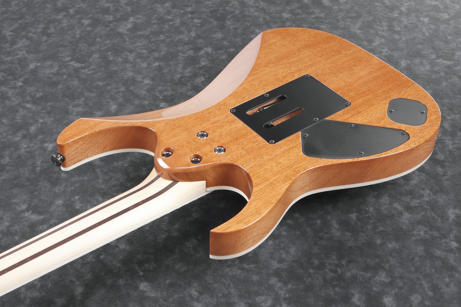 RG5320-CSW (Cosmic Shadow) Prestige with hardcase.Prestige er en serie rett under Ibanez J. Custom-serien. Japanskbygd i høyeste kvalitet med de beste tilgjengelige deler. Her finner du top-of-the-line treverk og hardware i instrumenter bygget av utrolig erfarne håndverkere. Litt flåsete kan man kalle det Ibanez standard versting serie. Der J. Custom vanligvis kommer i ekstremt små serier, bygges det flere av Prestige modellene. Men fremdeles med all håndverkskunnskap og nøyaktighet du forventer av Japanskbygde instrumenter i den høyeste divisjonen.RG, flaggskipet i Ibanez sitt gitarsortiment og uten tvil den modellen de er mest kjent for. RG står for, på smart japansk maner, Rock Guitar og et mer passende navn på en gitarmodell har sannsynligvis aldri eksistert. RG er utvilsomt den ultimate rockegitaren. En gitar som startet en skole for hvordan en rockegitar skulle se ut og utstyres. Egenskaper som ekstremt lettspilte og raske halser, heftig cut-away for tilgang til de høyeste båndene, tremolo som er innfelt i kroppen og holder stemmingen selv når du trykker til, og mikrofonkombinasjoner med mange lydmuligheter osv. er det alle forventer at en rockegitar skal ha etter at RG-modellen kom ut på markedet. Men RG er også så mye mer enn bare en rock. I 25 år har det vært førstevalget for gitarister som ønsker spillbarhet, pålitelighet og bredde i et instrument av høyeste kvalitet. En gitar som takler hva du bruker den til og som kan være med på popjobb om morgenen, en jazzjobb ved lunsjtid og fusion musikk i studio, mens du venter på at dansebandstudiojobben skal begynne før du drar på kveldens metall jobb for deretter å fortsette til en røykfylt bluesjam ut i de små morgentimene. Uansett hva du spiller, vil gitaren levere det du trenger. Til tross for modellens enorme suksess, har Ibanez ikke slått seg til ro, men fortsetter å utvikle modeller kontinuerlig med alt fra titanforsterkede halser, forskjellige tre- og mikrofonkombinasjoner, nye og bedre stoler, flere strenger, lengre halser og forskjellige halsprofiler. Utvikling skjer på alle modeller fra de enkleste til de absolutt verste modellene, så de går foran uansett hvilken prisgruppe du ser på. Ofte låner en lavere modell noe av en høyere og bedre serie, og bedre ting klatrer lenger og lenger ned i serien. RG er utvilsomt en modell som har lagt moderne klassiker bak seg og er med god margin kvalifisert på listen over gitarklassikere.Spec:Super Wizard HP 5pc Maple/Wenge neck.African Mahogany body.Bound Macassar Ebony fretboard w/off-set MOP dot inlay.Luminescent side dot inlay (lyser i mörker).Jumbo Stainless Steel frets w/Prestige fret edge treatment.Lo-Pro Edge tremolo.DiMarzio Fusion Edge (H) neck pickup.DiMarzio Fusion Edge (H) bridge pickup.Coil-tap switch.D'Addario® EXL120.009/.011/.016/.024/.032/.042Cosmo Black hardware.Hardcase included.Neck:Mensur: 648mm/25.5 .Bredd vid sadeln: 43mm.Bredd vid sista band: 58mm.Tjocklek vid första band: 17mm.Tjocklek vi 12 band: 19mm.Radius: 430mmR.