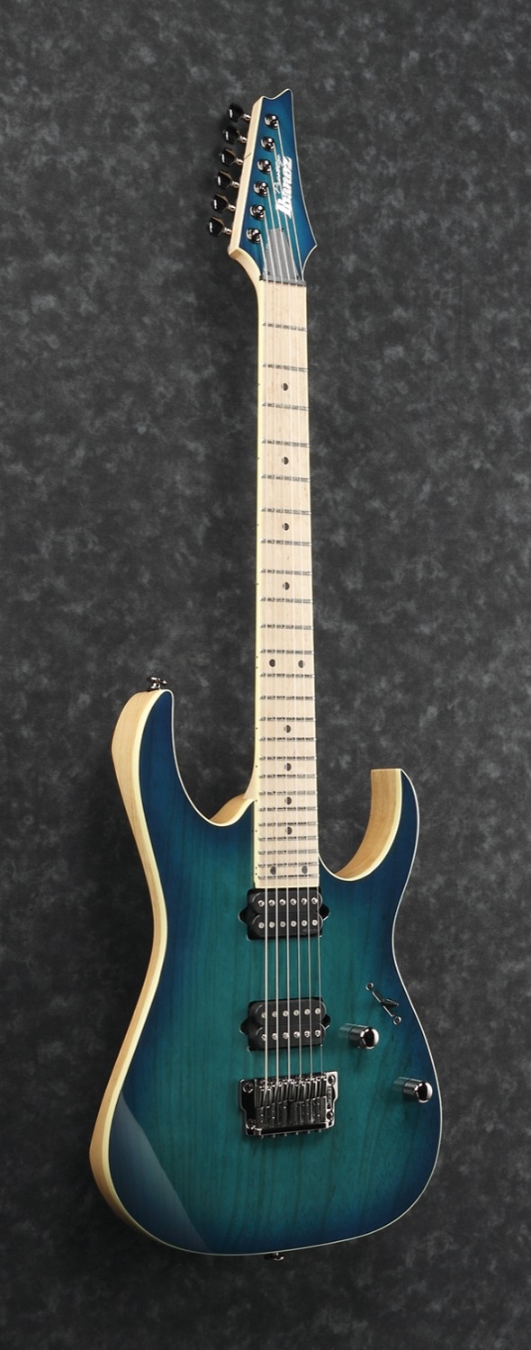 RG652AHMFX-NGB (Nebula Green Burst) PrestigePrestige er en serie rett under Ibanez J. Custom-serien. Japanskbygd i høyeste kvalitet med de beste tilgjengelige deler. Her finner du top-of-the-line treverk og hardware i instrumenter bygget av utrolig erfarne håndverkere. Litt flåsete kan man kalle det Ibanez standard versting serie. Der J. Custom vanligvis kommer i ekstremt små serier, bygges det flere av Prestige modellene. Men fremdeles med all håndverkskunnskap og nøyaktighet du forventer av Japanskbygde instrumenter i den høyeste divisjonen.RG, flaggskipet i Ibanez sitt gitarsortiment og uten tvil den modellen de er mest kjent for. RG står for, på smart japansk maner, Rock Guitar og et mer passende navn på en gitarmodell har sannsynligvis aldri eksistert. RG er utvilsomt den ultimate rockegitaren. En gitar som startet en skole for hvordan en rockegitar skulle se ut og utstyres. Egenskaper som ekstremt lettspilte og raske halser, heftig cut-away for tilgang til de høyeste båndene, tremolo som er innfelt i kroppen og holder stemmingen selv når du trykker til, og mikrofonkombinasjoner med mange lydmuligheter osv. er det alle forventer at en rockegitar skal ha etter at RG-modellen kom ut på markedet. Men RG er også så mye mer enn bare en rock. I 25 år har det vært førstevalget for gitarister som ønsker spillbarhet, pålitelighet og bredde i et instrument av høyeste kvalitet. En gitar som takler hva du bruker den til og som kan være med på popjobb om morgenen, en jazzjobb ved lunsjtid og fusion musikk i studio, mens du venter på at dansebandstudiojobben skal begynne før du drar på kveldens metall jobb for deretter å fortsette til en røykfylt bluesjam ut i de små morgentimene. Uansett hva du spiller, vil gitaren levere det du trenger. Til tross for modellens enorme suksess, har Ibanez ikke slått seg til ro, men fortsetter å utvikle modeller kontinuerlig med alt fra titanforsterkede halser, forskjellige tre- og mikrofonkombinasjoner, nye og bedre stoler, flere strenger, lengre halser og forskjellige halsprofiler. Utvikling skjer på alle modeller fra de enkleste til de absolutt verste modellene, så de går foran uansett hvilken prisgruppe du ser på. Ofte låner en lavere modell noe av en høyere og bedre serie, og bedre ting klatrer lenger og lenger ned i serien. RG er utvilsomt en modell som har lagt moderne klassiker bak seg og er med god margin kvalifisert på listen over gitarklassikere.Specs:• Super Wizard HP 5-delad lönn/Walnöt• Ask kropp• Inbunden Birdseye (fågellönn) lönn greppbräda• Jumbo band med Prestige Fret Edge Treatment• Gibraltar Standard II stall• Gotoh Magnum låsbara stämskruvar• DiMarzio® Air Norton halspickup (Alnico)• DiMarzio® Tone Zone stallpickup (Alnico)• Cosmo black hardware • Hardshell case includedNeck:• Scale: 648mm/25.5 .• Width at Nut: 43mm.• Width at Last Fret: 58mm.• Thickness at 1st: 17mm.• Thickness at 12th: 19mm.• Radius: 430mmR.