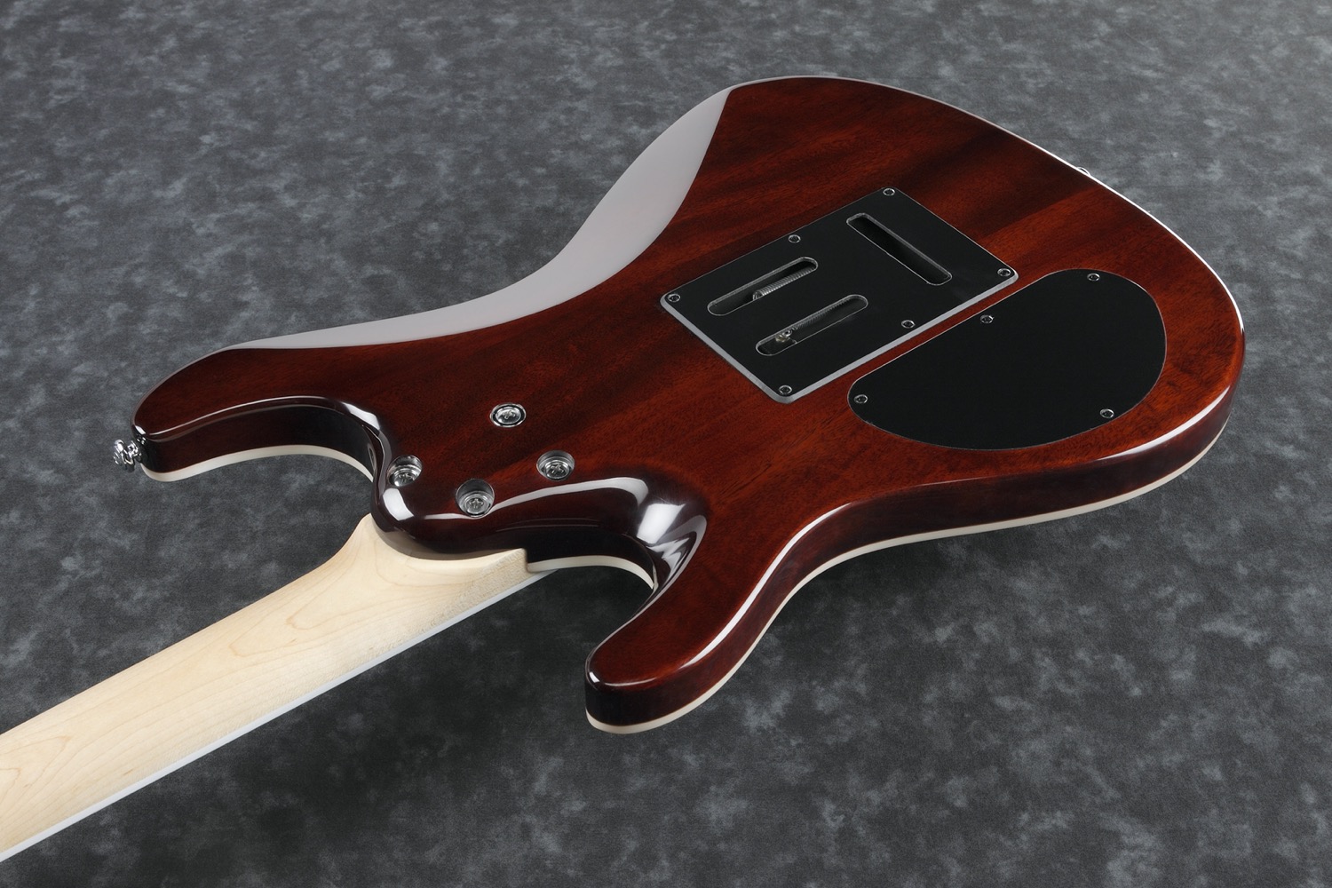 SA360NQM-BMG (Black Mirage Gradation).SA-modellen er som en mellomting mellom en S-modell og en normalt tykk gitar med buet topp (arched topp). En rundere og mykere skåret gitar enn den kantete RG-modellen. Med tykkere og rundere (mer C-formede) halser, to-punkts ikke-låsbar stol og True-duo humbucker i stolen med single-coil mikrofoner neck og middle, er det en gitar som snakker et mer tradisjonelt språk enn mye annet i Ibanez sitt sortiment. Modellen er en ekte lydkameleon som lett takler alt fra myk pop til metall.Spec:• 1pc SA Maple neck• Quilted Maple top/ Okoume body• Bound Jatoba fretboard w/Abalone dot inlay• Medium frets• T102 tremolo bridge• Resolution Single (S) neck pickup• Resolution Single (S) middle pickup• Quantum (H) bridge pickup• Chrome hardwareNeck:• Scale: 648mm/25.5 • Width at Nut: 42mm• Width at Last Fret: 57mm• Thickness at 1st: 19,5mm• Thickness at 12th: 21,5mm• Radius: 305mmR
