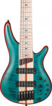 Spesifikasjoner:• Atlas-6 5-pc Panga Panga/Purpleheart Neck w/KTS™ TITANIUM reinforcement rods.• Flamed Maple Top /African Mahogany Body.• Flamed Maple Fretboard w/Blue oval inlay.• 24 Medium Frets w/Premium Fret Edge treatment.• Graph Tech BLACK TUSC XL nut.• Nordstrand™ Big Break Neck Pickup.• Nordstrand™ Big Break Bridge Pickup.• Ibanez Custom Electronics 3-bands EQ.• EQ bypass switch (passive tone control on treble pot).• 3-way Mid frequency switch.• Ibanez Mono-Rail MR5S Bridge (19mm string spacing)• Black Hardware.• Gigbag included.Passende etui: MB300C, MRB500C.Halsen:• 864mm/34" skala.• 54mm bred ved oversadelen.• 83mm bred ved siste bånd.• 19.5mm tykk ved 1. bånd.• 21.5mm tykk ved 12. bånd.• 400mmR radius.