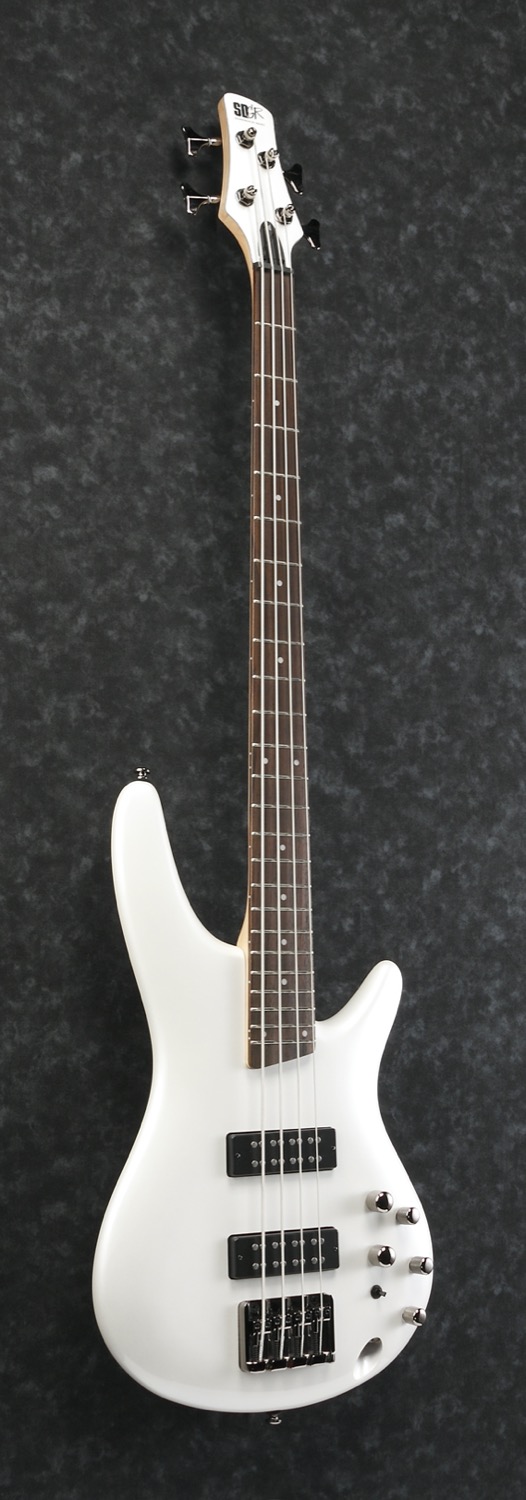 SR300E-PW (Pearl White). Soundgear. I 30 år har SR gitt bassister et moderne alternativ. Med sin kontinuerlige popularitet, prøver Ibanez stadig å svare på de bredere behovene til en rekke utøvere, og til en rekke budsjetter. Men uansett hva spesifikasjonene er, er hjertet det samme. SR fortsetter å begeistre med sin glatte, raske hals, lette kropp og perfekt matchede elektronikk. Spec: • SR4 5pc Maple/Walnut neck. • Nyatoh body. • Jatoba fretboard. • White dot inlays. • 24 medium frets. • Ibanez Accu-cast B120 Bridge. • PowerSpan Dual Coil Neck PU. • PowerSpan Dual Coil Bridge PU. • Custom Electronic 3-band EQ w/3-way Tap switch. • Cosmo Black hardware. Neck: • 864mm/34 scale. • 38mm Width at nut. • 62mm Width at last fret. • 19.5mm Thickness at 1F. • 21.5mm Thickness at 12F. • 305mmR radius.