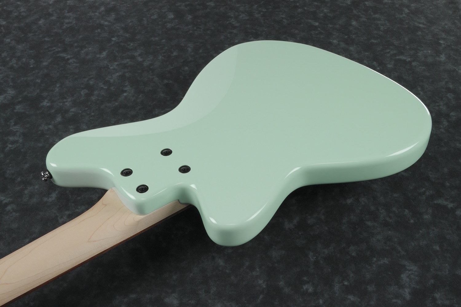 TMB35-BK (Mint Green) Talman Bass. 5-string. Den nye Talman bass-serien kombinerer gjenopptredenen av en historisk Ibanez kroppsform med sjangerløs allsidighet. TMB elektroniske system baner veien til en rekke klassiske toner. Spec: • TMB4 Maple Neck. • Jatoba fretboard. • 20 medium frets. • Poplar body. • B10 Bridge. • Dynamix P neck pickup (Passive) • Dynamix J bridge pickup (Passive) • Ibanez Custom Electronics 2-band EQ. • Chrome hardware. Neck: • 762mm/30 Scale. • 45mm Width at nut. • 72mm Width at last fret. • 21.5mm Thickness at 1F. • 24.5mm Thickness at 12F. • 240mmR radius.