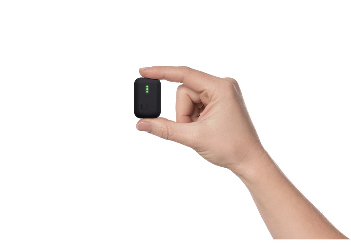 Bare 3,8 × 2,5 × 1,3 cm og 18 g – perfekt for diskret plassering.