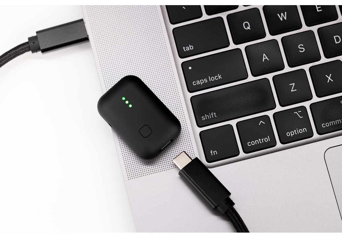 Opptil 4,5 timer opptakstid. Lades via USB-C på ca. 1 time og 9 minutter.