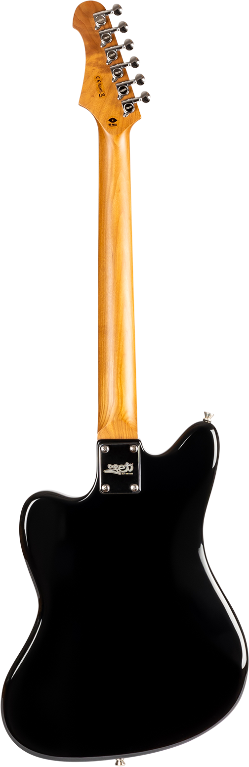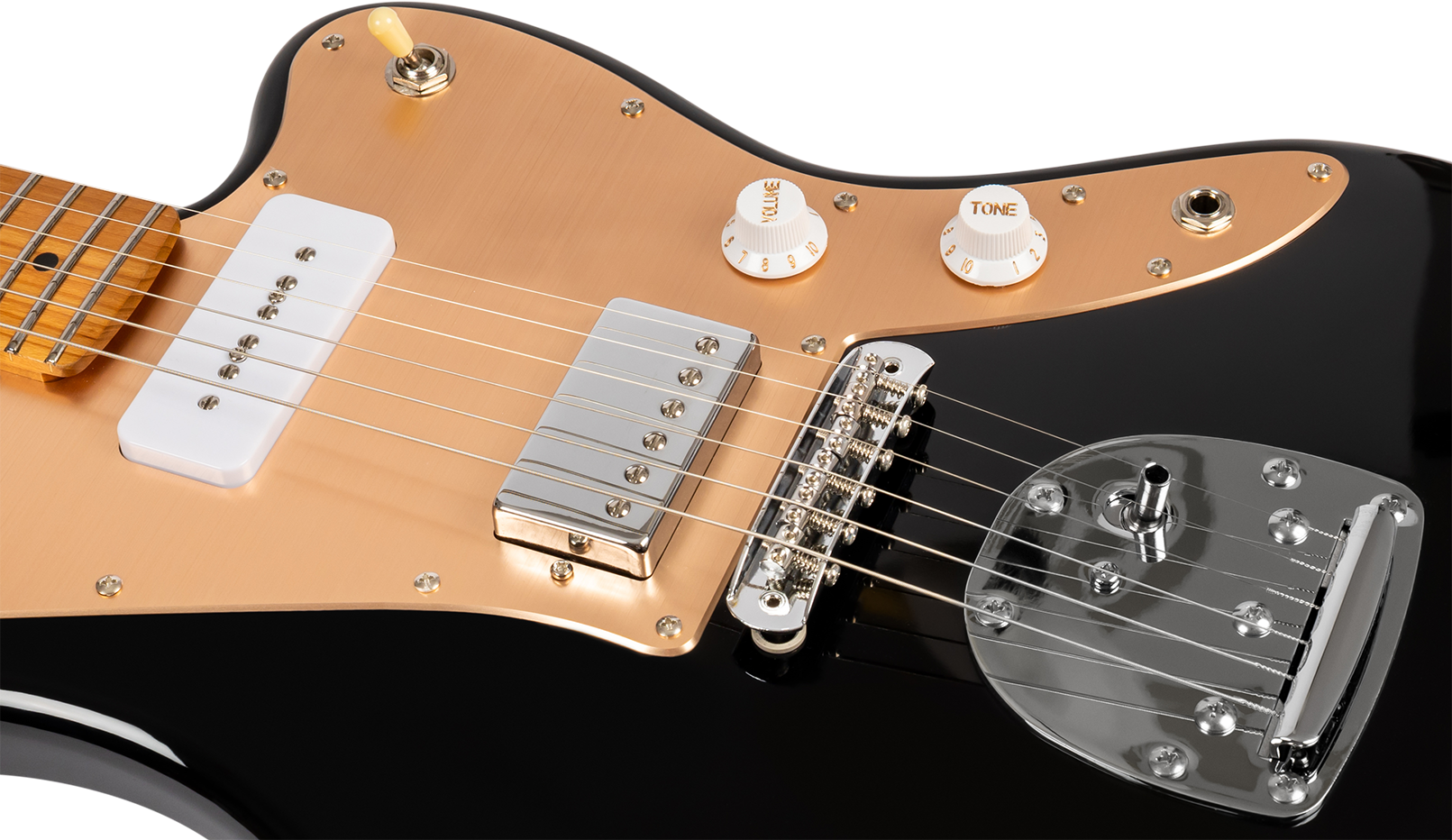 Pickup-oppsettet består av en humbucker i kombinasjon med en P90, begge spesialutviklet av JET og utstyrt med Alnico V-magneter. Dette gir et bredt register av lyder – fra fyldig og kraftig til åpen og artikulert. Elektronikken styres via én volumkontroll, én tonekontroll og en 3-veis pickup-bryter. Vintage tremolo-broen gir mulighet for moderat vibrato-bruk, mens krom hardware og sort finish med gullplekterbrett gir gitaren et markant og klassisk preg.