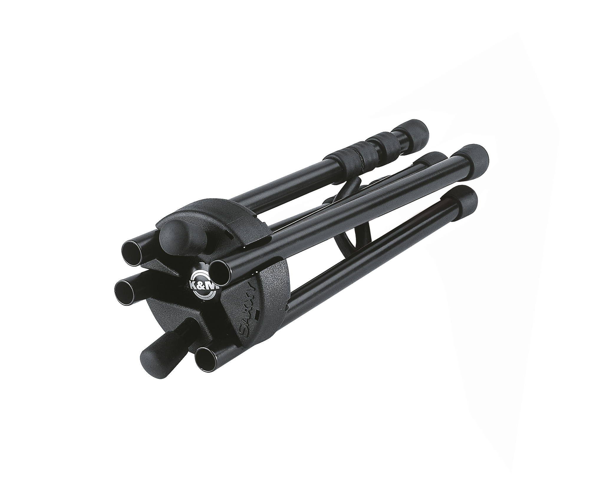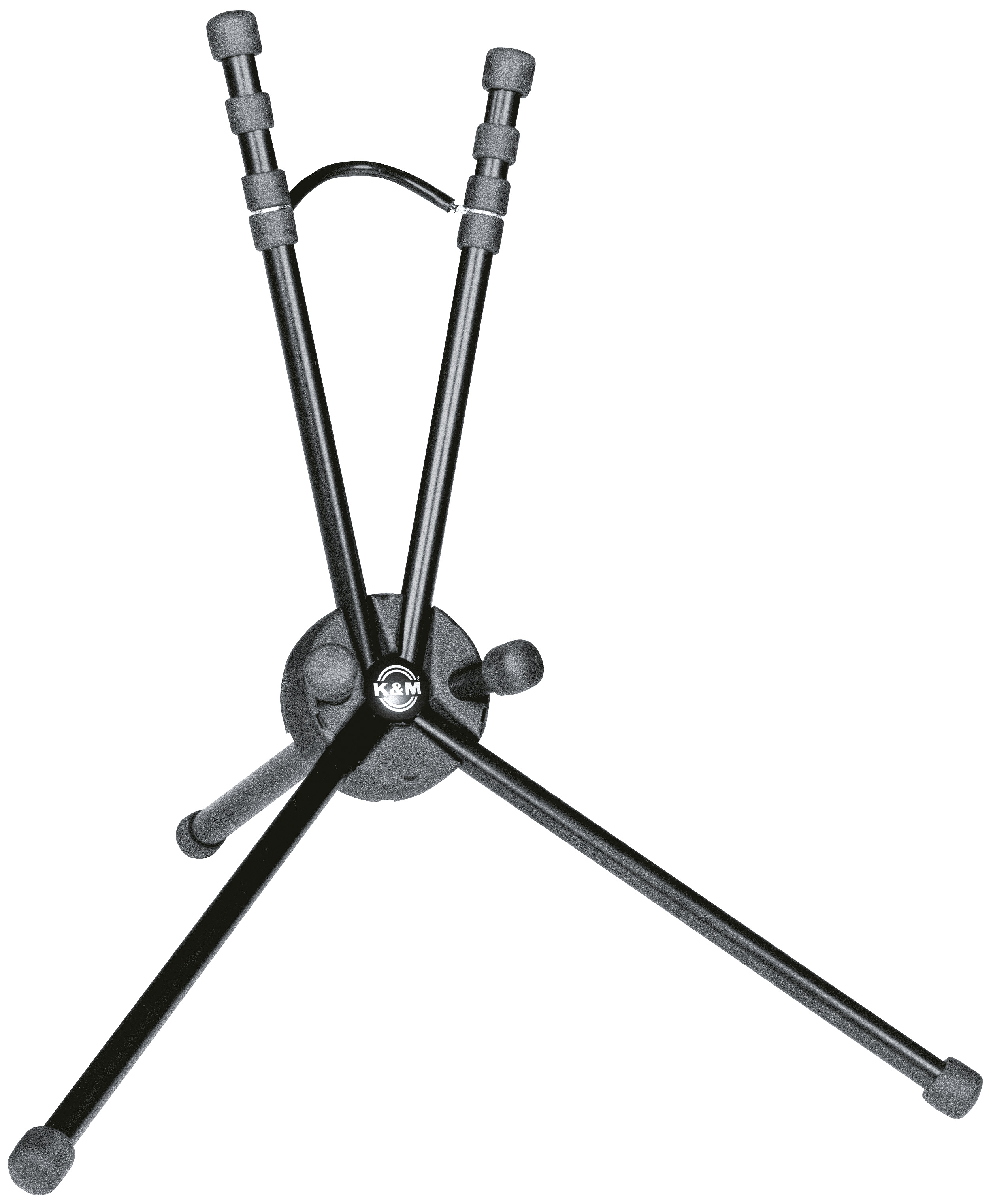 Robust og praktisk: Dette ultrasmå, ekstremt kompakte saksofonstativet, Saxxy, gir støtte til Eb altsaksofoner. Det fantastiske er at stativet, når det er foldet sammen i den medfølgende velourposen, kan oppbevares og transporteres i klokken på saksofonen.