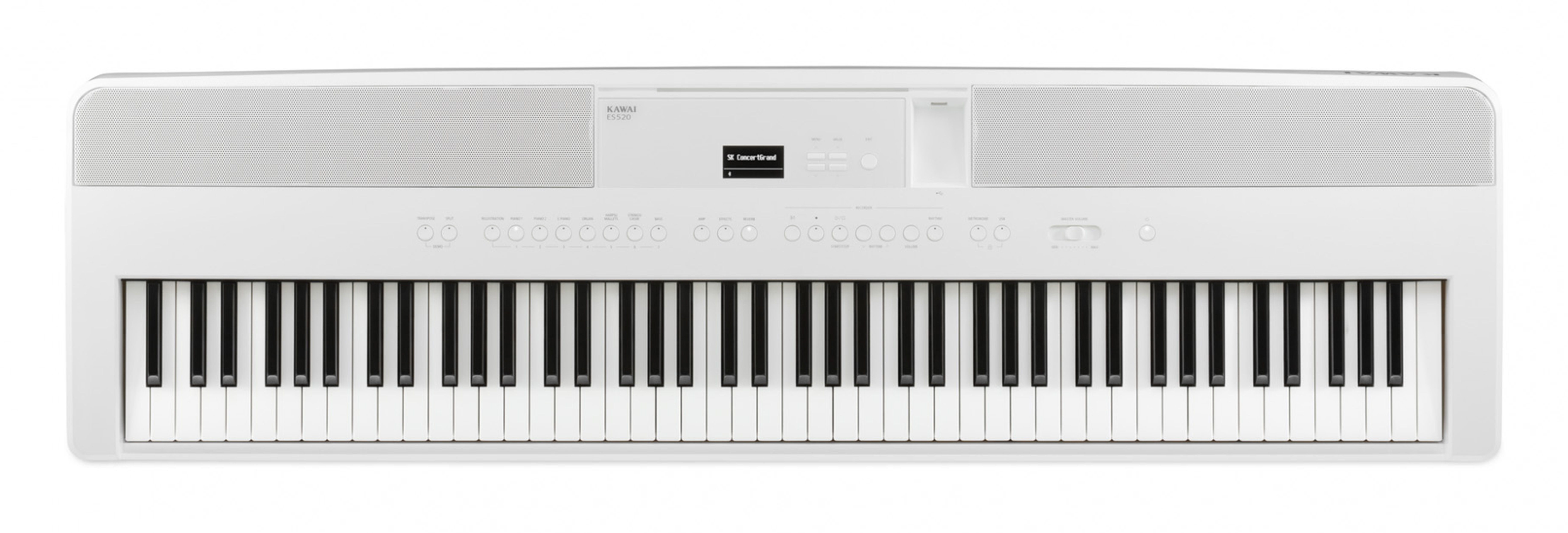 Kawai ES520 er et portabelt digitalpiano med fokus på autentisk spillefølelse og fleksibilitet. Det hvite og elegante designet kombinert med lav vekt gjør det ideelt for hjemmebruk, undervisning, kirker og live-opptredener.